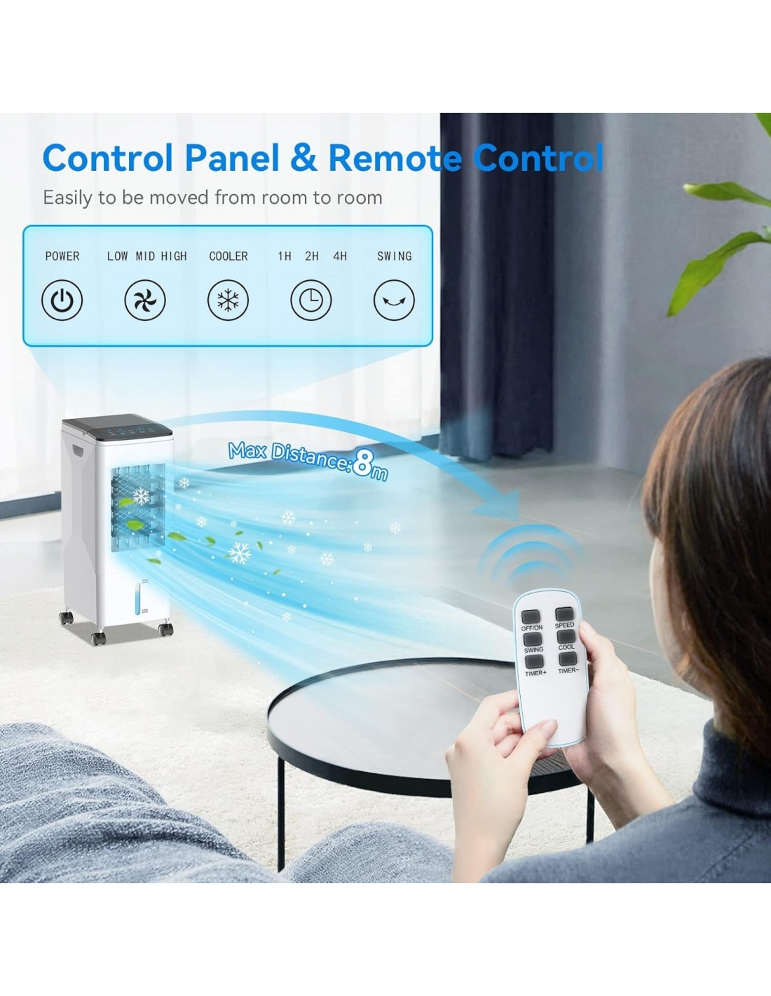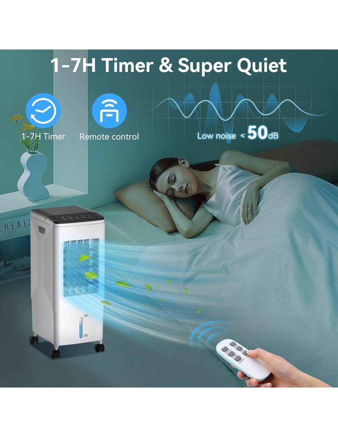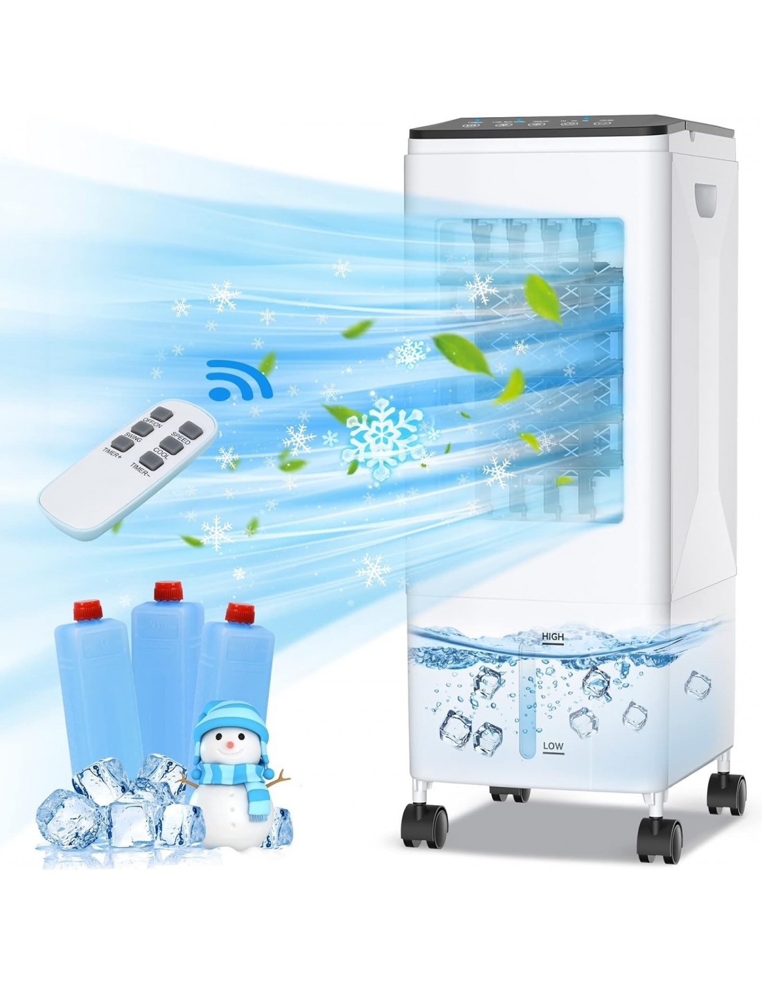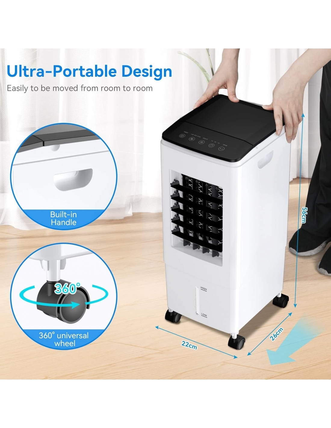 - Questo condizionatore d'aria portatile adotta un design a doppio serbatoio d'acqua. Il serbatoio d'acqua superiore può essere aperto con il coperchio per aggiungere acqua, mentre il serbatoio d'acqua inferiore è rimovibile per una facile pulizia. Il serbatoio d'acqua da 6 litri è dotato di 4 contenitori per il ghiaccio, che possono fornire un flusso d'aria fresca a lungo termine senza frequenti aggiunte di acqua. In modalità di raffreddamento, può anche aumentare l'umidità interna.