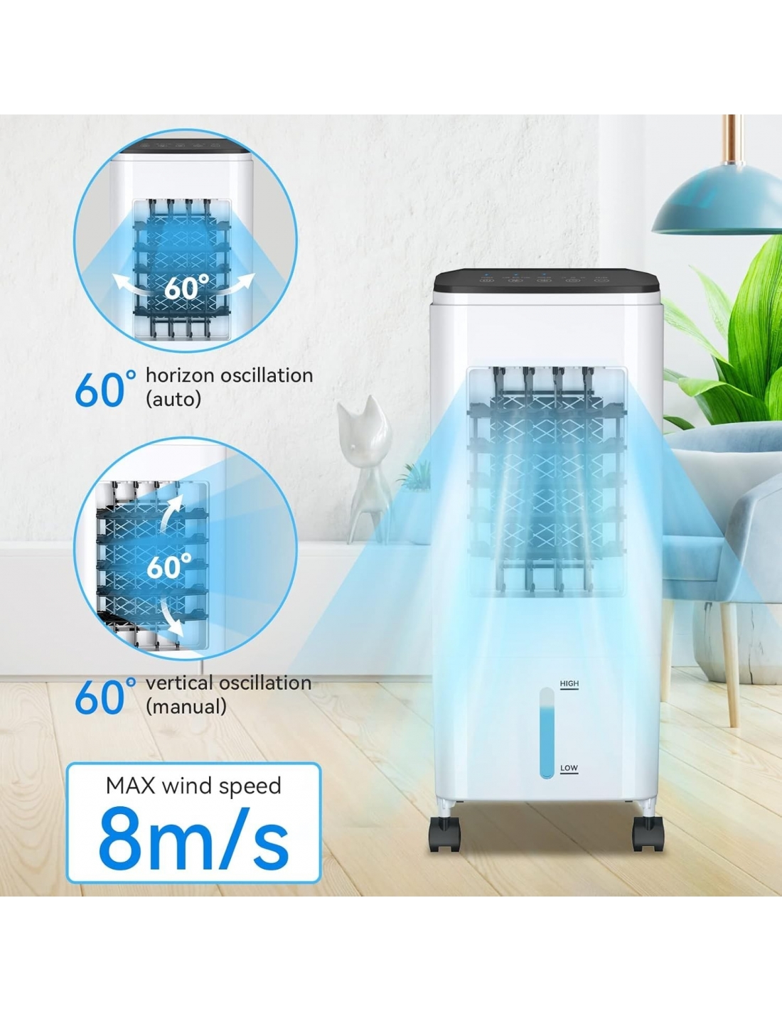 BW-102Y Condizionatore Mobile 3 in 1 Raffreddatore d'aria Portatile Personale Air Cooler Ventilatore Evaporativo con 5.5L Serbatoio dell'acqua 3 Velocità 1-7H Timer per Casa e Ufficio [Classe di efficienza energetica A]