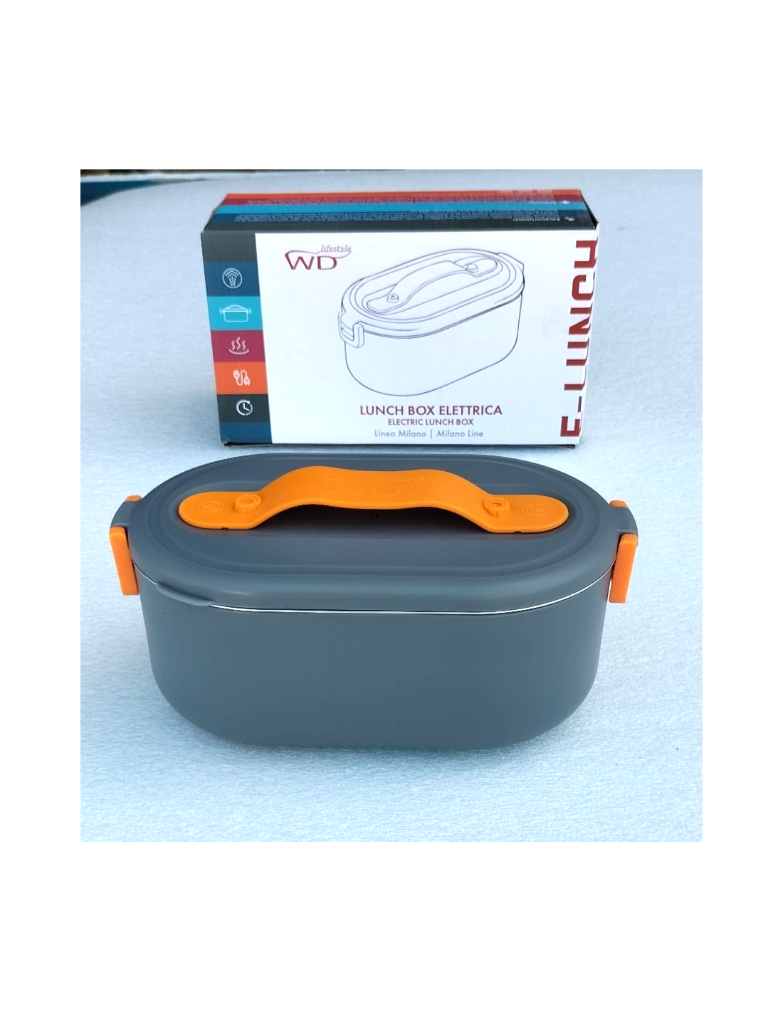 Lunch box elettrico portatile, con vassoio estraibile in acciaio inox. L'alleato perfetto per i tuoi pasti fuori casa, non avrai più bisogno del microonde. Grazie al pratico contenitore in acciaio inox perfetto per scaldare pasta, riso, zuppe e tanto altro collegare il portapranzo con il cibo all'interno alla presa di corrente utilizzando correttamente il cavo in dotazione ed attendere circa 20 min. È molto facile da pulire e grazie alla chiusura ermetica può essere trasportato comodamente senza rovesciare il contenuto e senza lasciare odori nell'ambiente