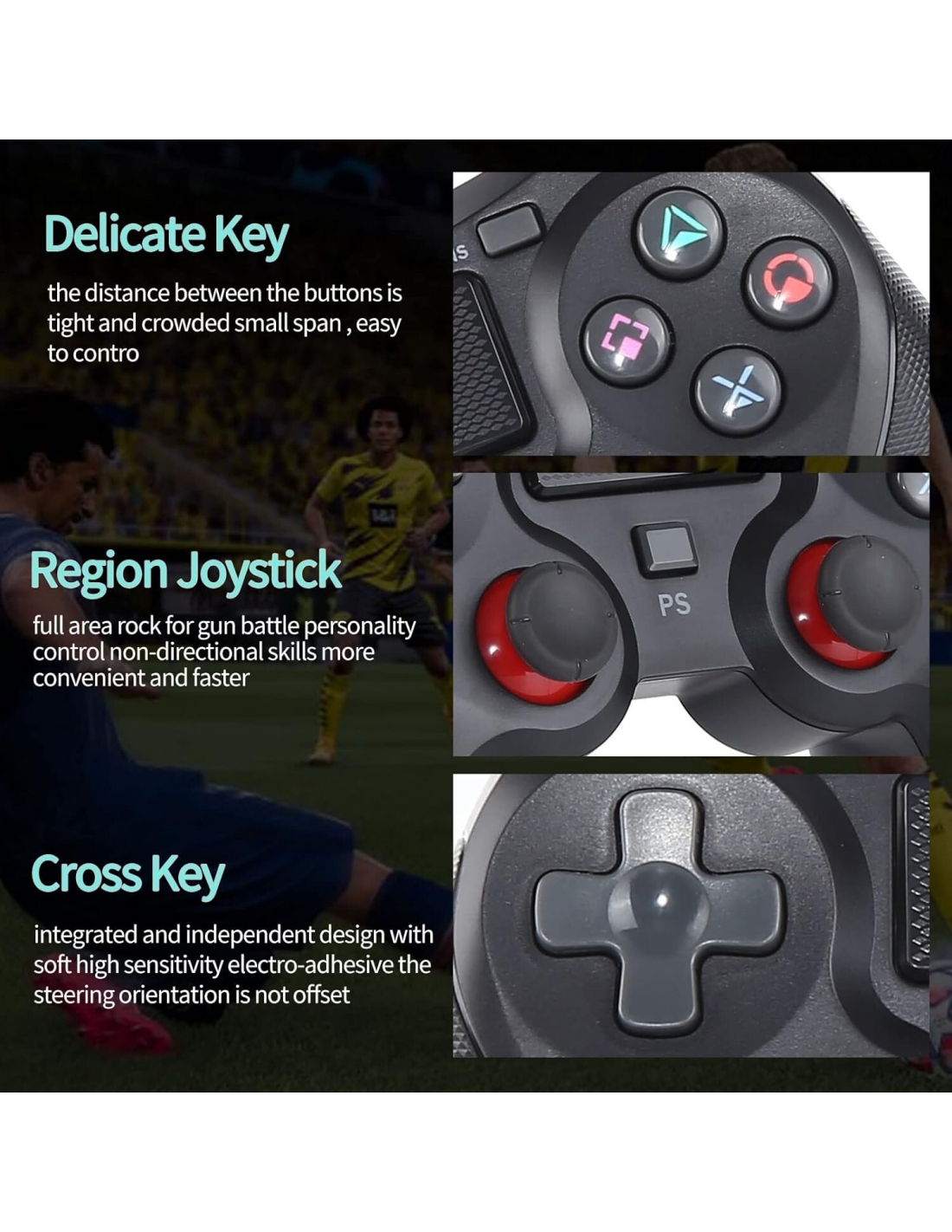 - Funzionamento più preciso: due joystick analogici con design ergonomico rendono il dito più facile da adattare alla forma, consentendo un funzionamento più preciso. Ti fa giocare comodamente i videogiochi per ore sul tuo PC o PS4.