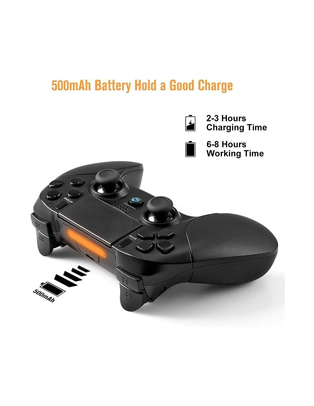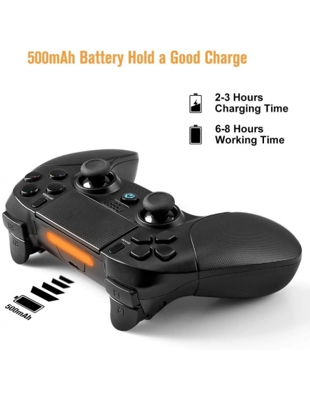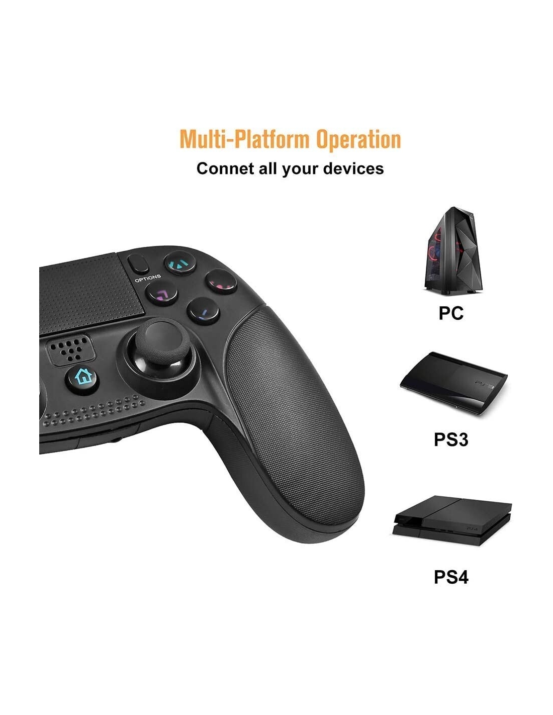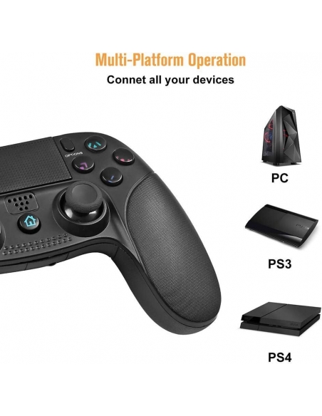 Fabbricato con materiali di alta qualità, offre l'esclusiva tecnologia antiscivolo "Diamond" per avere una presa migliore, che aumenta l'ergonomia e assicura un'esperienza di gioco più confortevole. Funzione “SIX-AXIS” della più recente tecnologia di rilevamento del movimento.Controller wireless per PlayStation 4. Compatibile con PS4, PC/LAPTOPS e PSTV/SMART TV. Funzione di vibrazione DoubleShock 4 per aumentare il senso di realismo in tutti i videogame. Avverti tutti i colpi, gli scontri e le esplosioni nei palmi delle tue mani. Stesse misure del controller originale.“Pulsante Share” per catturare screenshot, condividere o vedere un videoclip. Interagisci con i tuoi amici sui social network. "Pulsante delle Opzioni". Touchpad con tutte le funzioni (tocco, trascinamento, riduzione, ingrandimento e scorrimento). Barra luminosa a LED in 7 colori.Prova i nuovi 4 pulsanti standard in vetro nei colori classici, ma con un design esclusivo, leggeri e più intuitivi. Batteria agli ioni di litio di nuova generazione con 1000 mAh di capacità, che permette al giocatore di giocare più a lungo e ininterrottamente per 8-10 ore senza ricaricare.Altoparlante sulla parte anteriore, jack da 3,5 mm Stereo Headset e jack esterno per minitastiera. Micro USB sulla parte anteriore per la ricarica del controller quando il sistema è in modalità di riposo. Supporta anche la ricarica sul retro in una stazione di ricarica tramite il jack esterno.