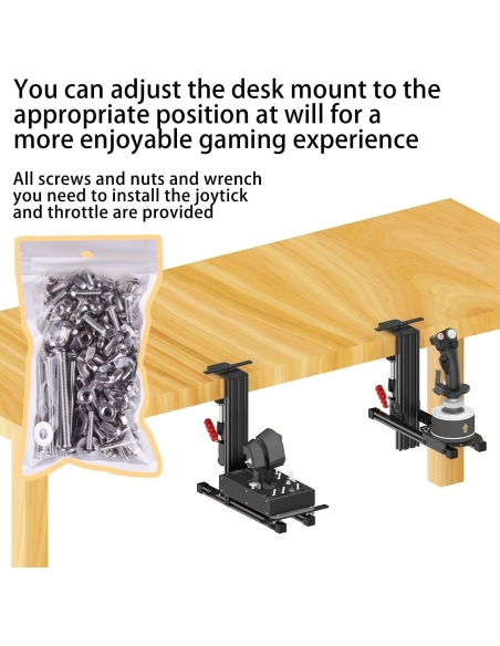 - Costruzione stabile: un sistema di fissaggio solido, sicuro e stabile. Sistema di fissaggio con piedini antiscivolo per proteggere la superficie della scrivania o del tavolo e garantire una migliore presa. Facile e veloce da rimuovere: non ostacola se non lo usi per la simulazione di volo. Sistema a doppia mano: può essere posizionato sia per utenti mancini che per destrorsi