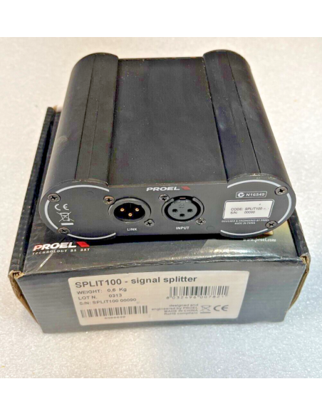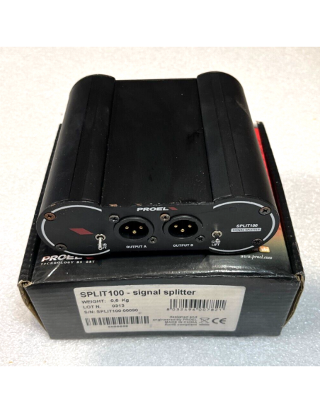 Il Prole Split 100 è uno splitter di segnale passivo che ripartisce un segnale microfonico o di linea in due segnali in uscita uguali all'originale.
