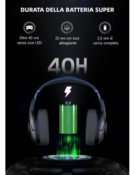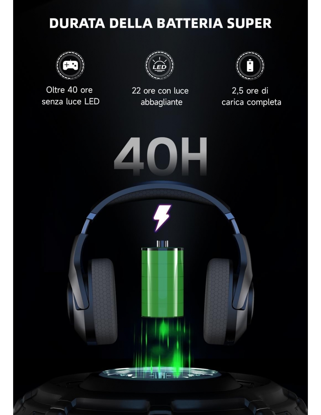 - 【 Durata della batteria di 40 ore 】 Con questo auricolare wireless PS5 con microfono è possibile giocare fino a 40 ore ininterrottamente senza dover ricaricare la batteria. L'auricolare PS4 ha una durata della batteria di 25 ore quando la luce RGB è spenta. Quando la carica della batteria scende al di sotto del 3%, si suona un allarme vocale. La ricarica dell'auricolare richiede solo 2,5 ore per essere completamente carica.