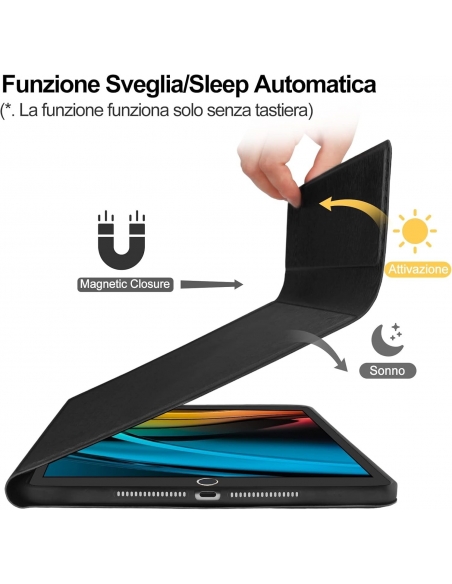 - 【Funzione Auto Sveglia/Standby】- Grazie alle strisce magnetiche integrate, questa custodia supporta la funzione di auto sveglia e standby. Quando chiudi la cover, il tuo iPad va in modalità standby, mentre aprendo la cover si risveglierà immediatamente. Questa potente funzione è estremamente comoda e aiuta a risparmiare energia.