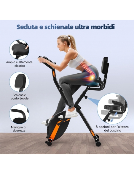 - 【𝐏𝐢ù 𝐦𝐨𝐫𝐛𝐢𝐝𝐨 𝐞 𝐩𝐢ù 𝐜𝐨𝐧𝐟𝐨𝐫𝐭𝐞𝐯𝐨𝐥𝐞】 La cyclette pieghevole con Schienale è dotata di un cuscino posteriore aggiornato, realizzato con materiali morbidi e confortevoli, per garantire il massimo del supporto durante gli allenamenti. n combinazione con il sedile regolabile e l'altezza della maniglia, puoi trovare la posizione di esercizio più comoda,Questo miglioramento offre una sensazione di comfort anche durante sessioni prolungate, permettendoti di allenarti senza pensieri