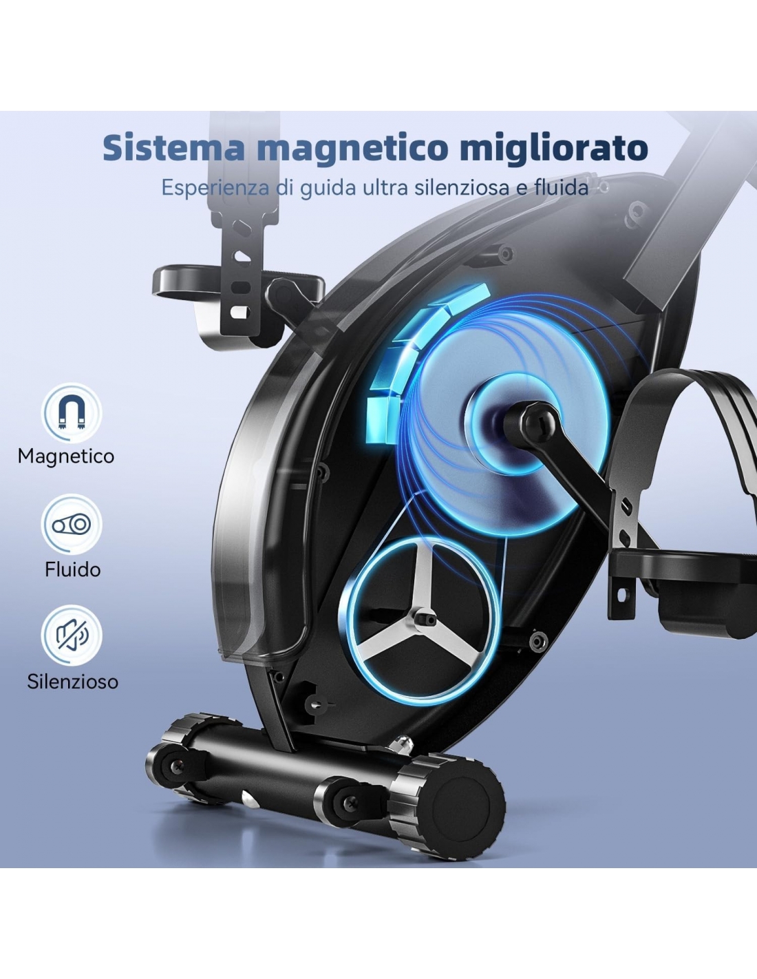 - 【𝐒𝐢𝐬𝐭𝐞𝐦𝐚 𝐝𝐢 𝐑𝐞𝐬𝐢𝐬𝐭𝐞𝐧𝐳𝐚 𝐌𝐚𝐠𝐧𝐞𝐭𝐢𝐜𝐚 𝐏𝐢ù 𝐒𝐢𝐥𝐞𝐧𝐳𝐢𝐨𝐬𝐨 𝐞 𝐅𝐥𝐮𝐢𝐝𝐨】Questa cyclette pieghevole è dotata di un sistema di resistenza magnetica aggiornato con 16 livelli di resistenza, progettato per offrire un'esperienza di ciclismo più fluida e silenziosa che mai. Il meccanismo magnetico migliorato riduce l'attrito e il rumore, garantendo transizioni senza sforzo tra i livelli di resistenza. Che tu stia facendo un riscaldamento leggero o un allenamento intenso, il design avanzato assicura un funzionamento silenzioso, rendendola perfetta per l'uso a casa, anche in spazi condivisi o durante le ore di tranquillità