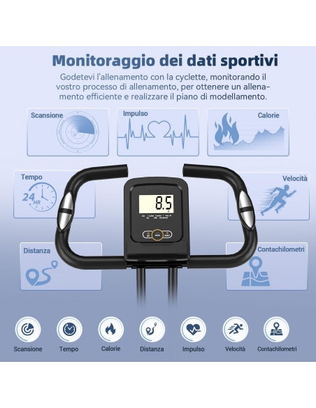 - 【𝐃𝐢𝐬𝐩𝐥𝐚𝐲 𝐋𝐂𝐃 𝐞 𝐌𝐨𝐧𝐢𝐭𝐨𝐫 𝐝𝐞𝐥𝐥𝐚 𝐅𝐫𝐞𝐪𝐮𝐞𝐧𝐳𝐚 𝐂𝐚𝐫𝐝𝐢𝐚𝐜𝐚】 Il display LCD e il rilevatore della frequenza cardiaca monitorano in tempo reale il battito cardiaco, le calorie bruciate, la distanza percorsa e la velocità di pedalata, aiutandoti a gestire meglio la tua forma fisica e ottimizzare i tuoi allenamenti
