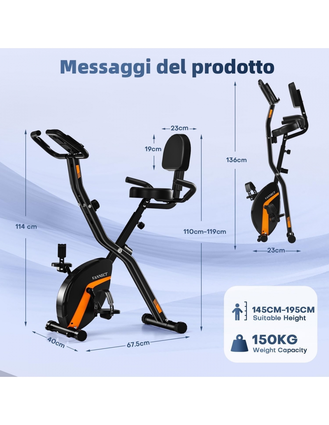 VANNECT Cyclette Pieghevole con Schienale e 8/16 Livelli di Resistenza, Magnetiche Cyclette da casa con fascia di resistenza, Monitor LCD Misurazione e Delle Pulsazioni Portata 150/160Kg