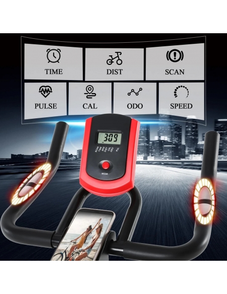 - ✅ MONITOR DELLA FREQUENZA CARDIACA: è una bici da appartamento dotata di un buon schermo che visualizza i dati: Tempo/Velocità/Calorie/Distanza/Pulsazioni. Sensore di frequenza cardiaca in grado di monitorare la frequenza cardiaca durante l'esercizio. Bicicletta per la cura del ciclismo con funzione di scansione integrata. Design a rulli mobili e piedini antiscivolo regolabili sul fondo, Sposta facilmente la cyclette in qualsiasi angolo.