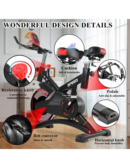 - ✅DESIGN ERGONOMICO: Cyclette per casa con volano da 13KG - fornisce resistenza continua - Meno rumore e una cintura facilita la manutenzione - Sistema di trasmissione con pedali antiscivolo regolabili per un trasferimento di energia ottimale --Ammortizzatori sotto il sedile per ridurre le vibrazioni. La sella con imbottitura integrata allevia la schiena durante l'esercizio e la comoda sella offre un allenamento più lungo. Cyclette professionale con design ergonomico del sedile.