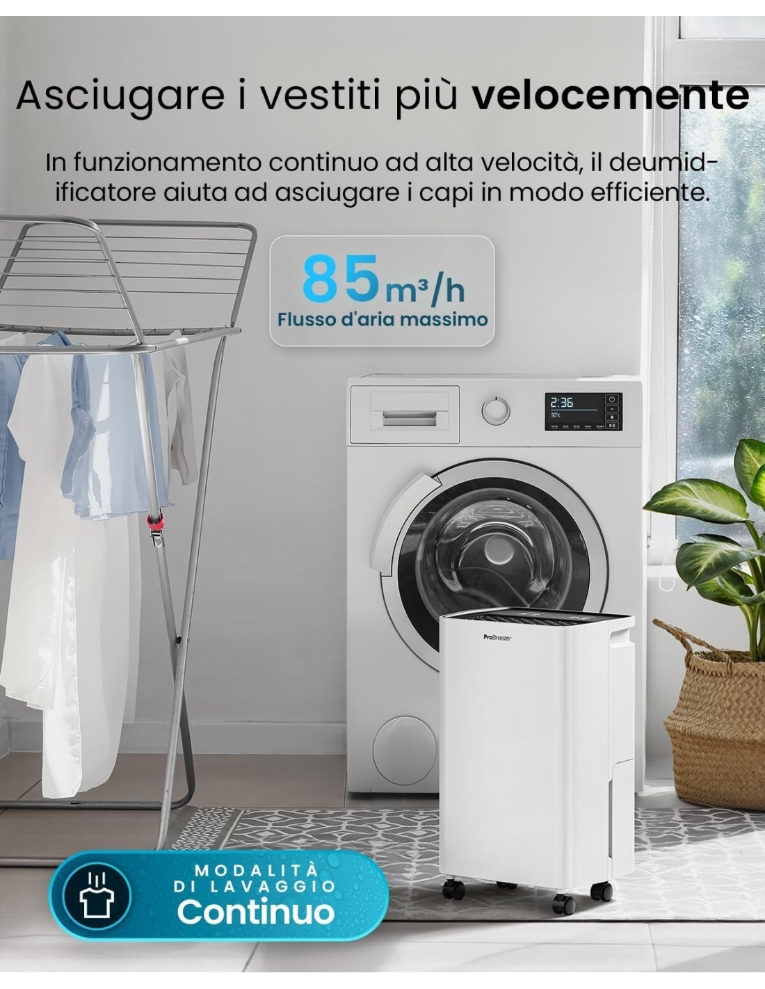 - ASCIUGA I TUOI VESTITI PIÙ RAPIDAMENTE: Il deumidificatore Pro Breeze, uno degli elettrodomestici più avanzati per la casa, utilizza un compressore d'aria efficiente e una modalità di asciugatura continua che ti consente di asciugare i vestiti più velocemente senza dover accendere il riscaldamento o utilizzare un'asciugatrice. È perfetto per l'uso nella tua lavanderia.