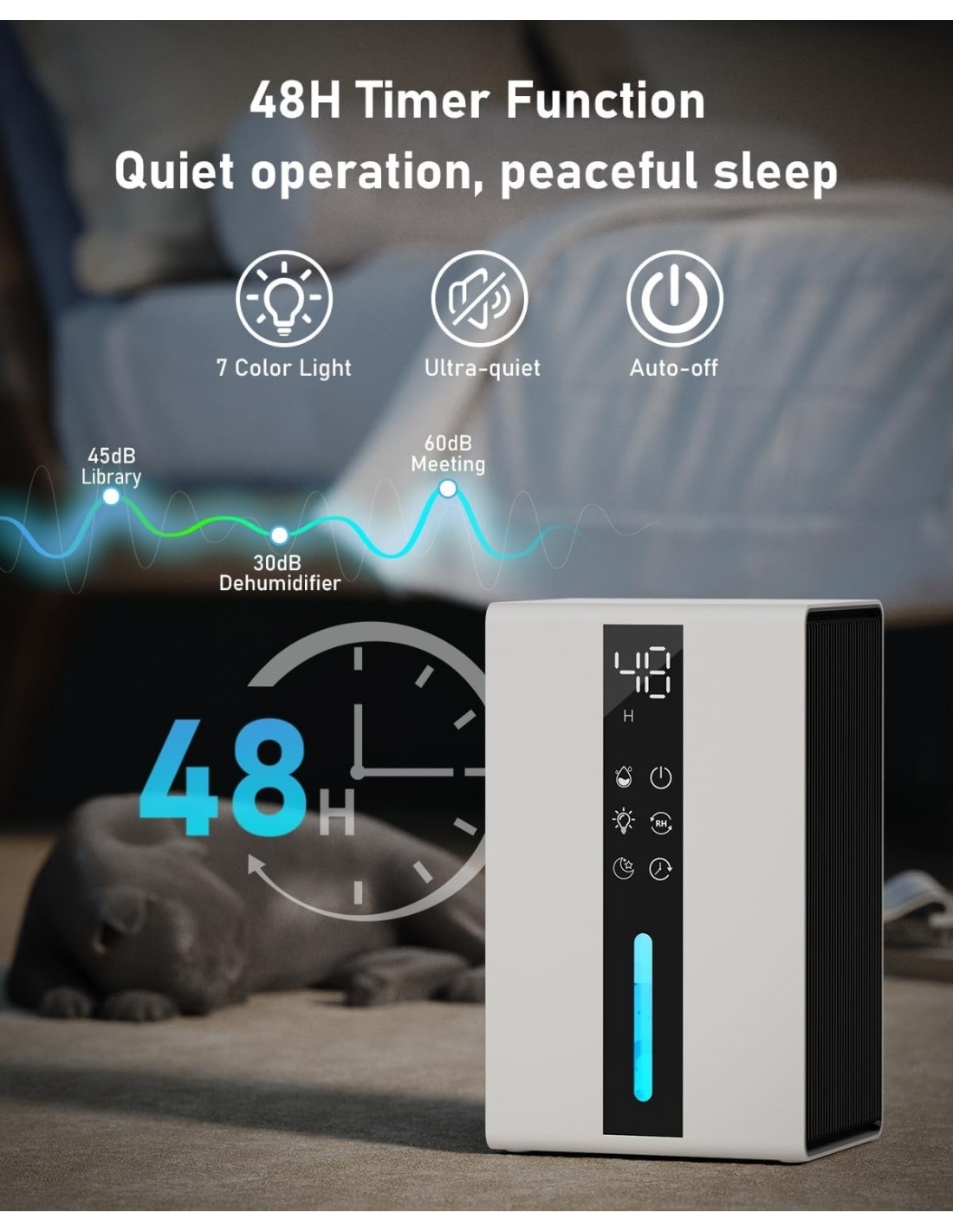 KIMBONNI Deumidificatore ad aria 1800 ml, con spegnimento automatico, portatile, ultra silenzioso, spegnimento automatico, deumidificatore con timer 48H, luce