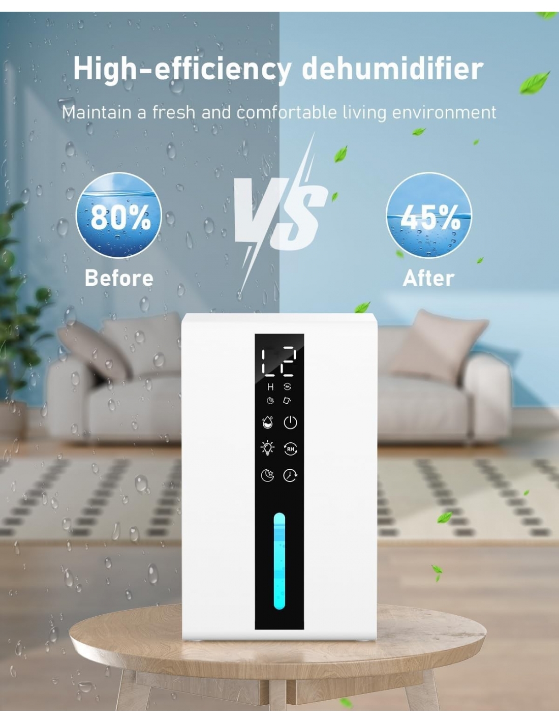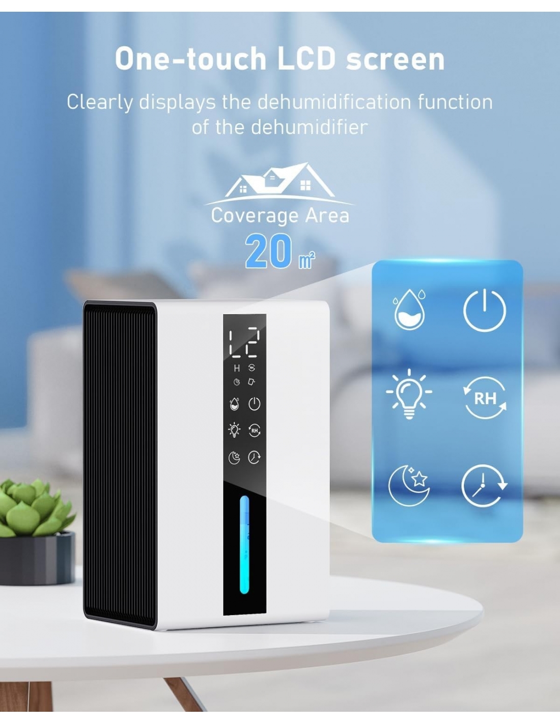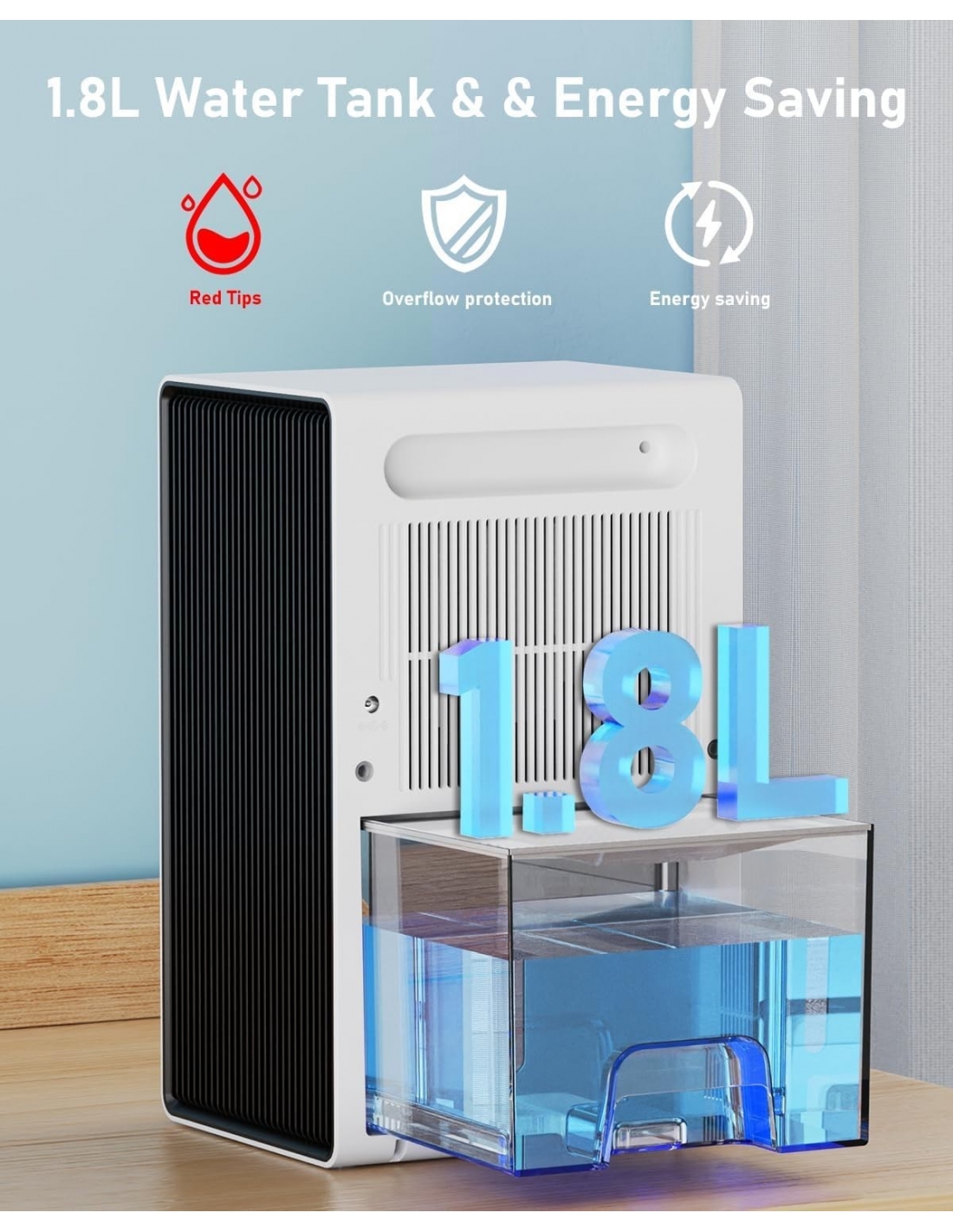 KIMBONNI Deumidificatore ad aria 1800 ml, con spegnimento automatico
