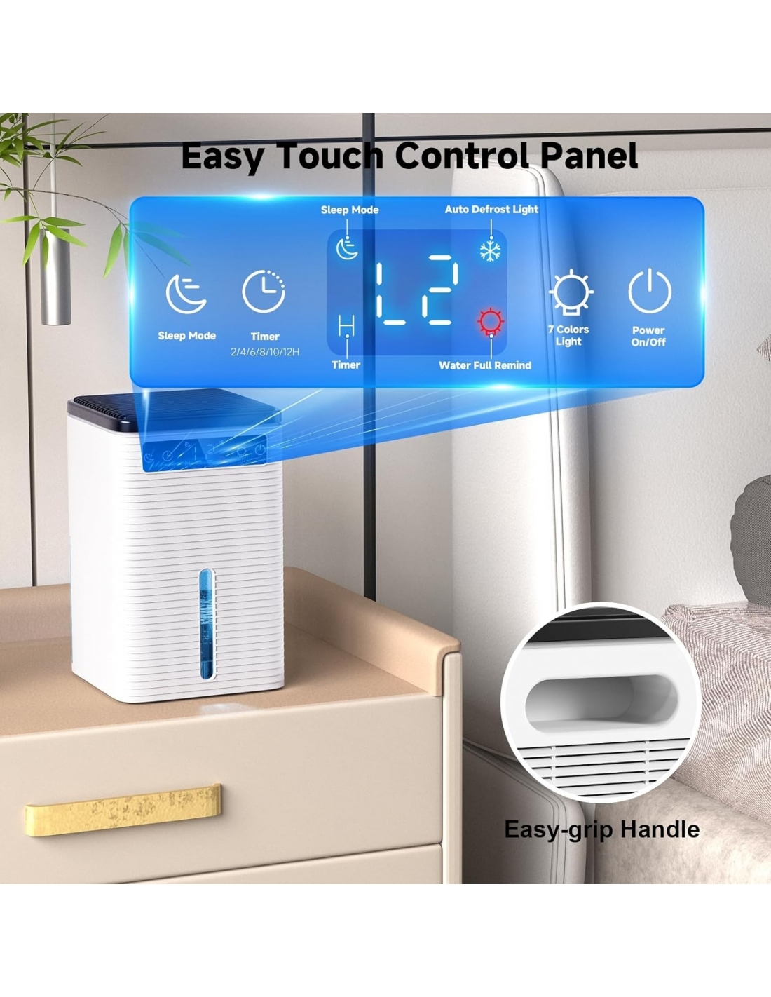 Deumidificatore KSM-DF01 elettrico da 2200 ml, elettrico, portatile, molto silenzioso, per bagno, camera da letto, spegnimento automatico, timer 2-12 ore, 7 colori, funzione di sbrinamento