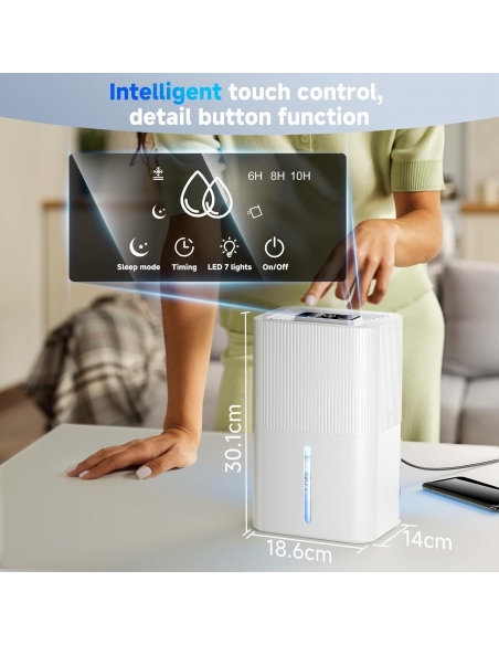 - Funzione silenziosa: il dispositivo di deumidificazione adotta una tecnologia di funzione silenziosa avanzata per garantire un livello di rumore estremamente basso ed evitare la presenza di funzioni di rumore. Se usi costantemente un deumidificatore, non devi preoccuparti del rumore e goditi sempre uno spazio di vita tranquillo e tranquillo