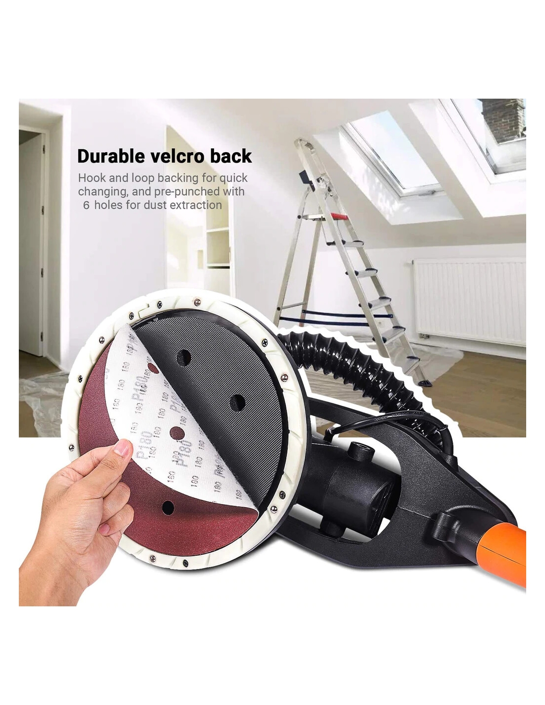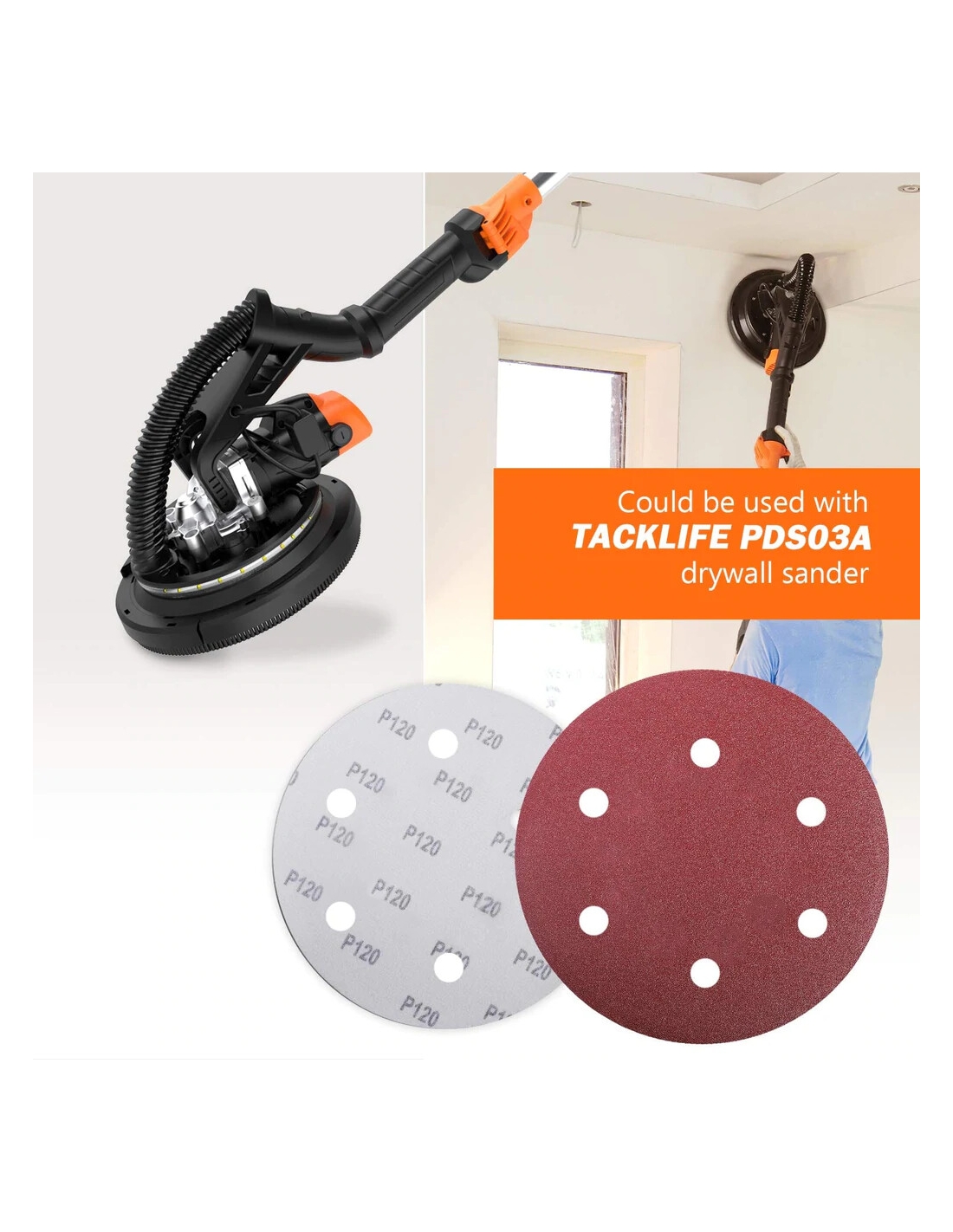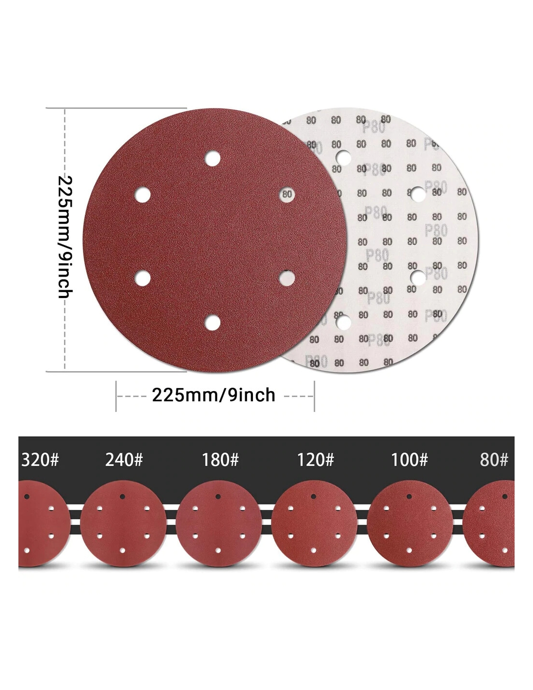 【Specifiche del prodotto】 30 pezzi, 80, 100, 120, 180, 240, 320 grane, 9 pollici225 mm, dischi abrasivi a 6 fori per levigatrice per cartongesso TACKLIFE PDS03A e altre levigatrici o lucidatrici da 225 mm.