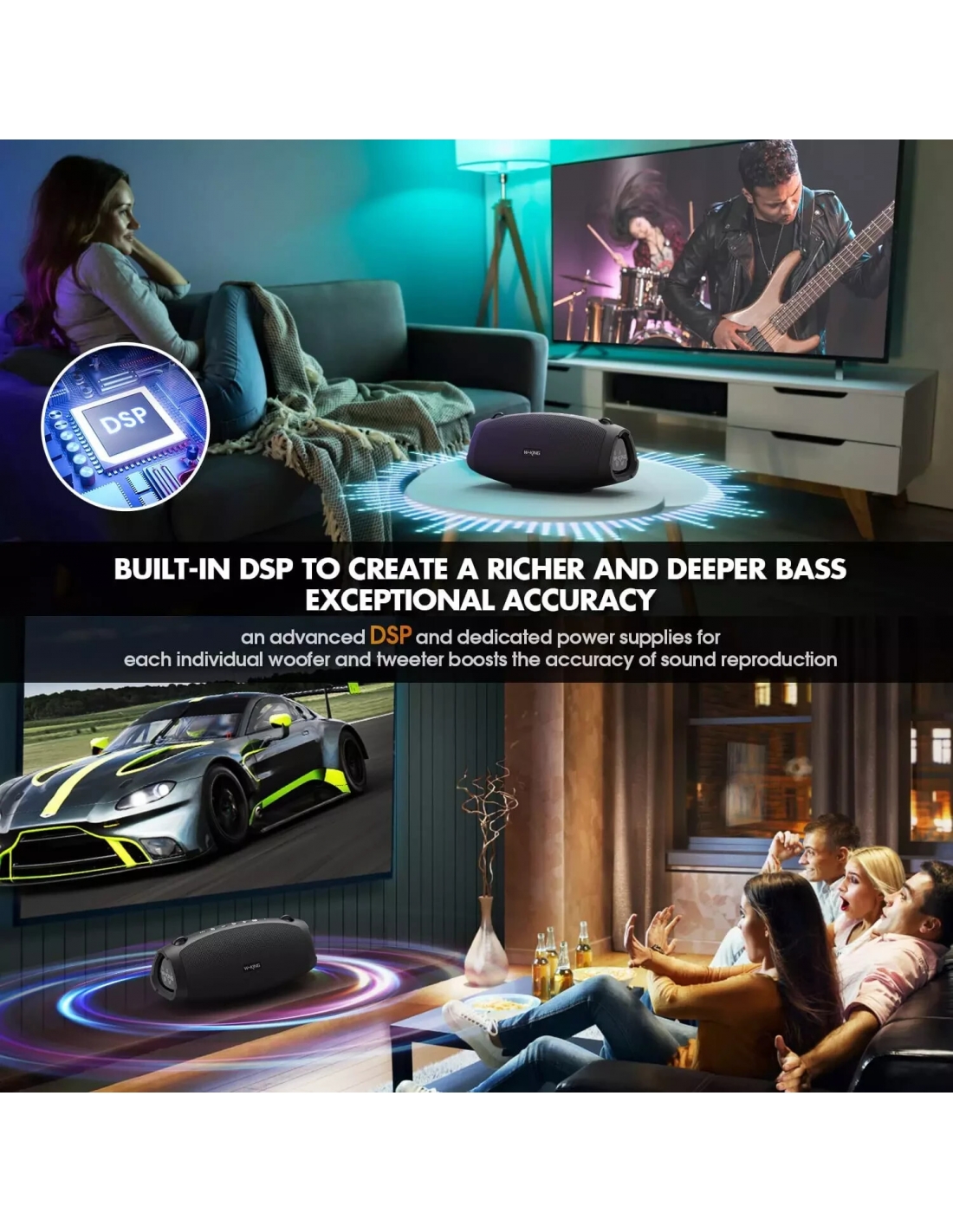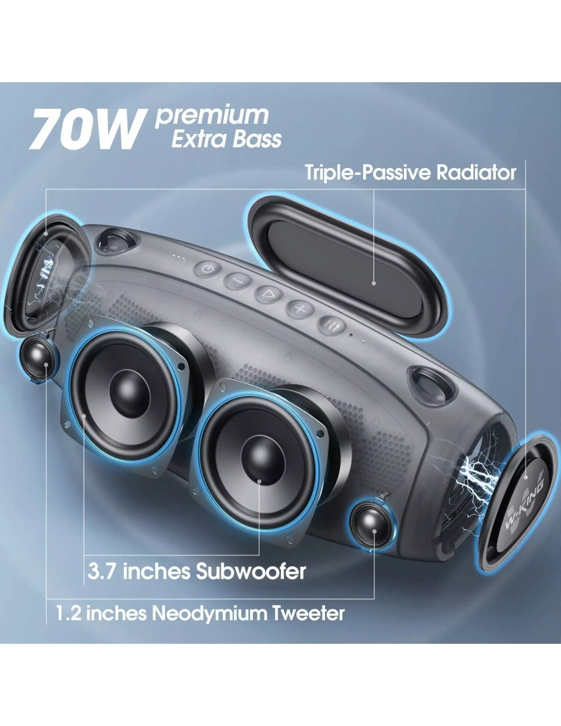 - 120W Picco 70W OMNIDIREZIONALE HIFI BASSI PROFONDI: Cassa Bluetooth W-KING X10 Loud è il primo sul mercato con tripli radiatori passivi (2 * 3,5" laterali e 4,76" posteriori), che possono fornire un'esperienza di bassi profondi senza pari con altri Bluetooth cassa. Gli altoparlanti portatili da esterno Bluetooth wireless sono inoltre dotati di subwoofer da 2*45W peak, tweeter da 2*15W peak e chip DSP avanzato per ottenere toni medio-alti più chiari, un suono ricco e uniforme senza distorsione.