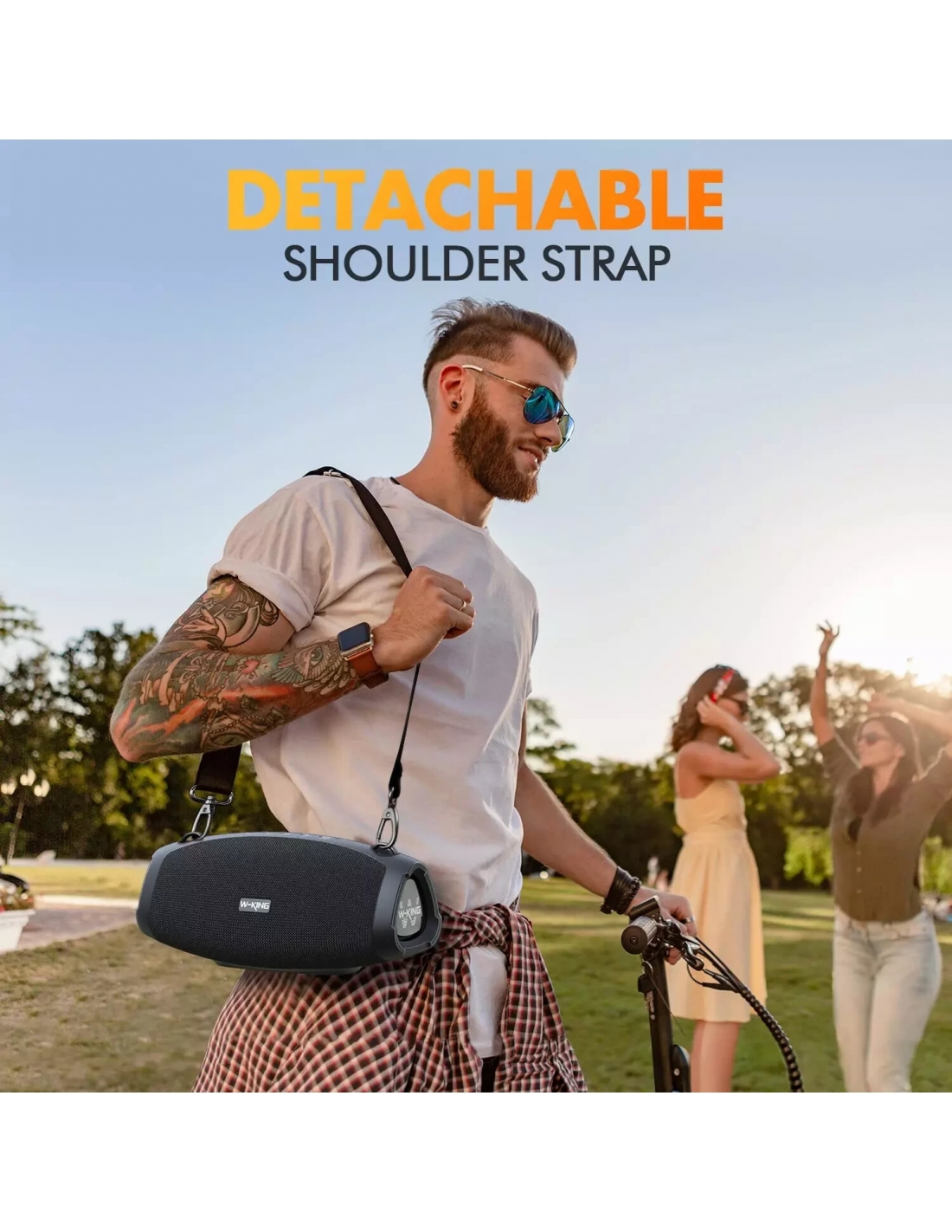 - CINGHIE RIMOVIBILI E IMPERMEABILI IPX6: cassa Bluetooth impermeabile altoparlante ha un design raffinato che incorpora robusta plastica ABS e gomma morbida traslucida. Puoi portarlo in spiaggia e ovunque, ascoltare la tua musica preferita e accompagnare il tuo tempo libero (non metterlo direttamente in acqua). cassa altoparlanti bluetooth impermeabile W-KING X10 include una tracolla regolabile e resistente agli strappi per un facile trasporto ed è progettato per le persone attive in movimento.