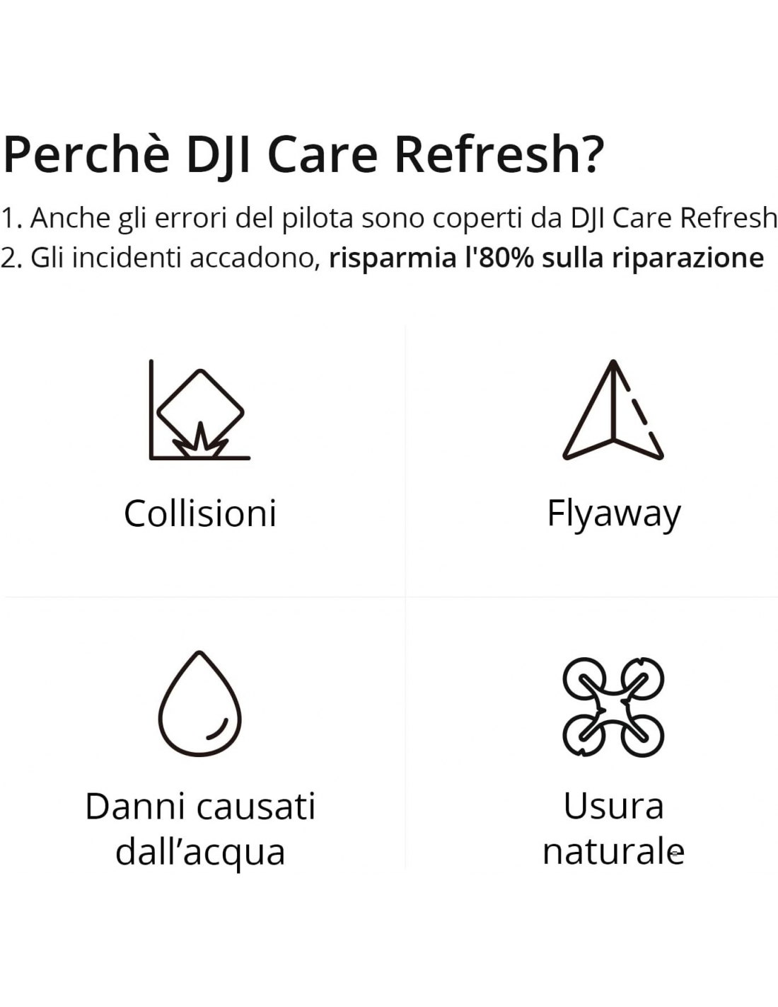 - Tassa di servizio DJI Care Refresh: La tariffa di sostituzione è di 75 € e la tariffa per il servizio di copertura Flyaway è di 255 €. L'utilizzo della Copertura Flyaway consumerà 1 opportunità di sostituzione.