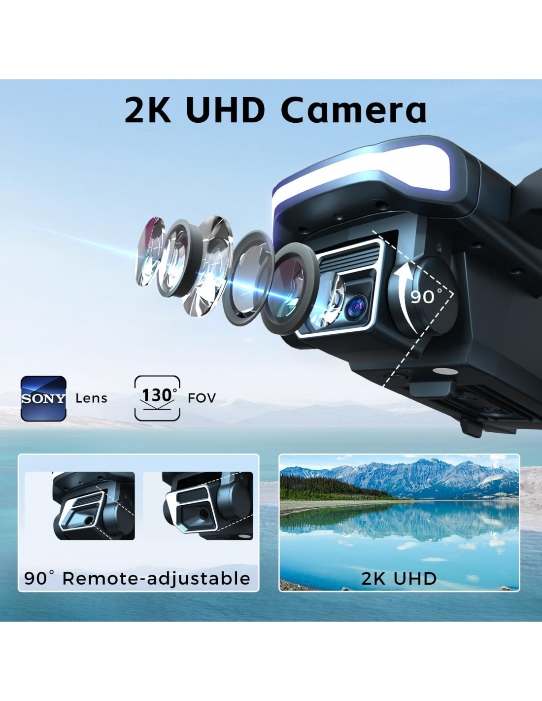 - Fotocamera regolabile 2K HD: dotata di una fotocamera 2K HD, che può essere regolata entro 90° con il tuo telecomando o l'app, l'obiettivo grandangolare da 108° ti offre un'esperienza emozionante di sfondo dell'aria e ti aiuta a catturare ogni momento meraviglioso da una prospettiva a volo.