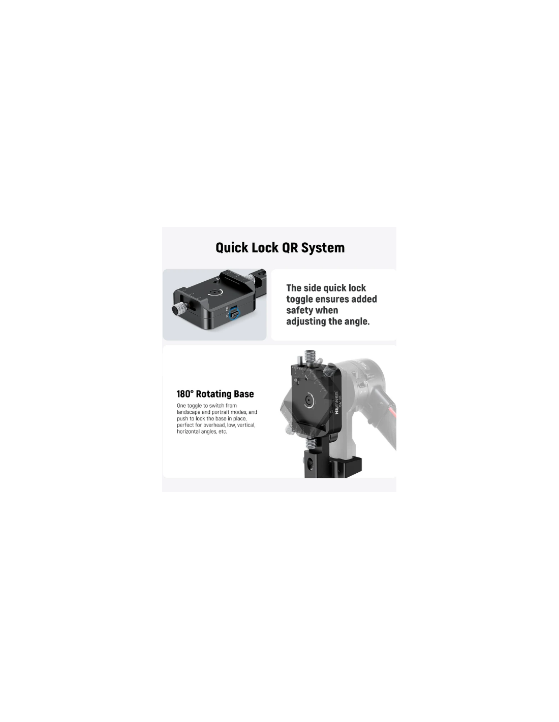 L'attrezzatura fotografica NEEWER CA108 funziona perfettamente con la base girevole a 180° del morsetto a sgancio rapido per aggiungere flessibilità alle riprese a mano libera, e spinge per bloccare la base in posizione, perfetta per riprese dall'alto, dal basso, verticali, orizzontali, ecc.