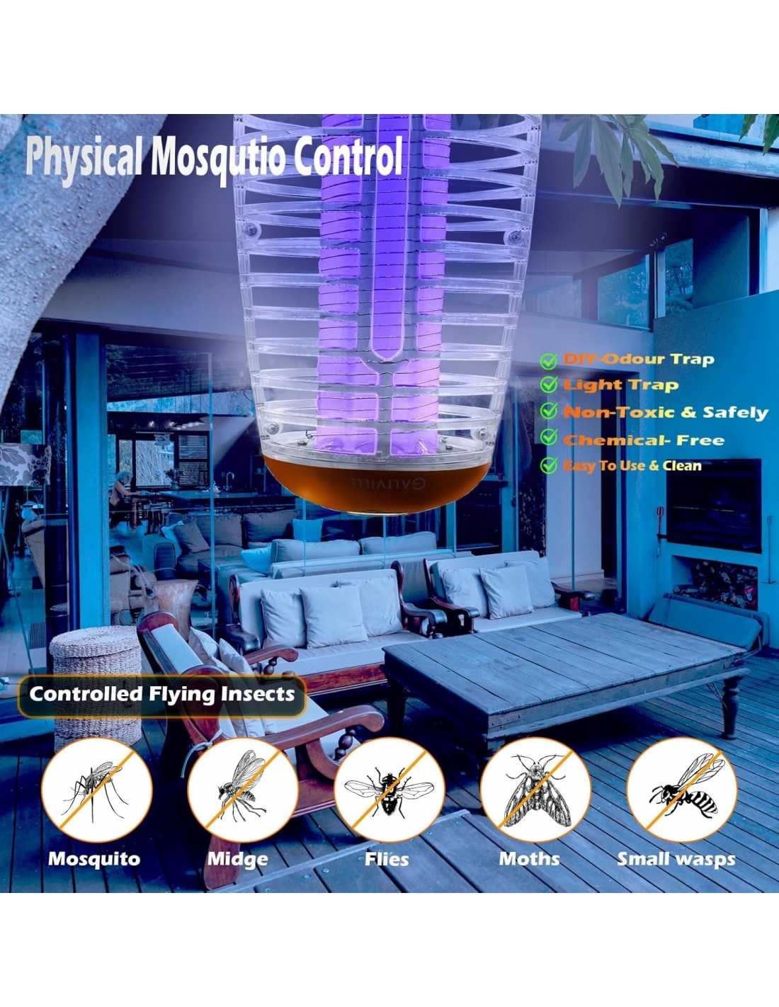 FireFyer Lampada LED interni ed esterni repellente luce UV anti insetti zanzare