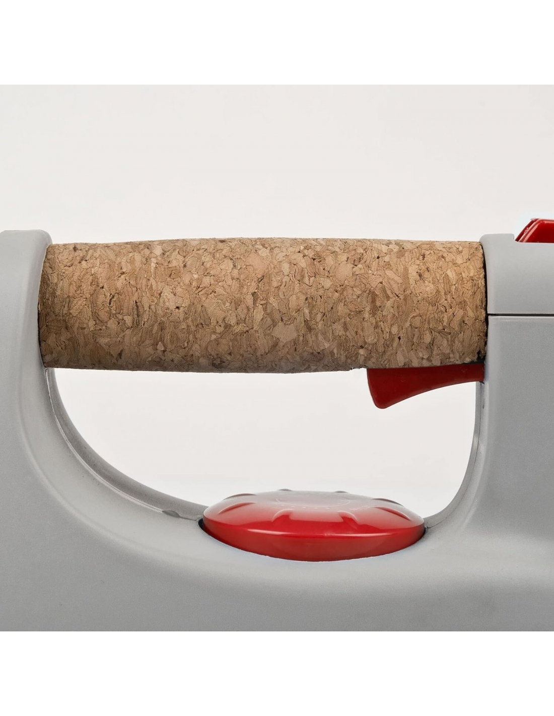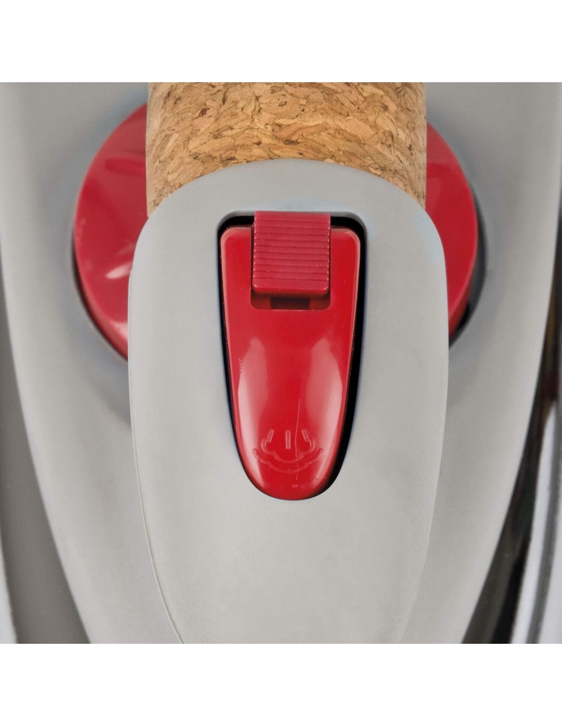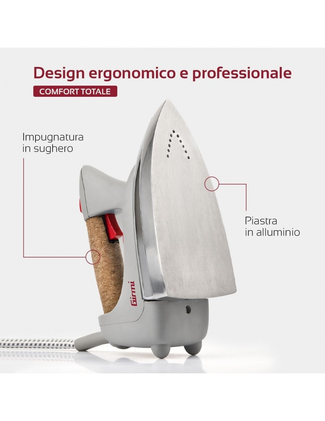 - Ferro con piastra di alluminio per una distribuzione uniforme del calore e impugnatura in sughero per un comfort ottimale, ideale anche per mancini.