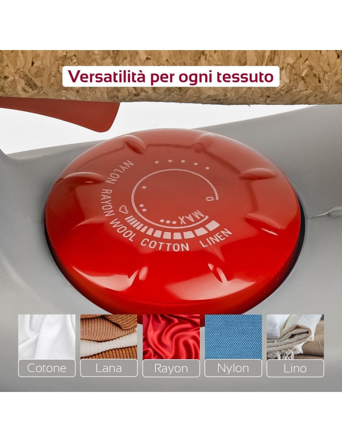 - Questo ferro da stiro con caldaia ha un termostato regolabile su diversi livelli, adattabile dalla seta al cotone, dai sintetici al lino.