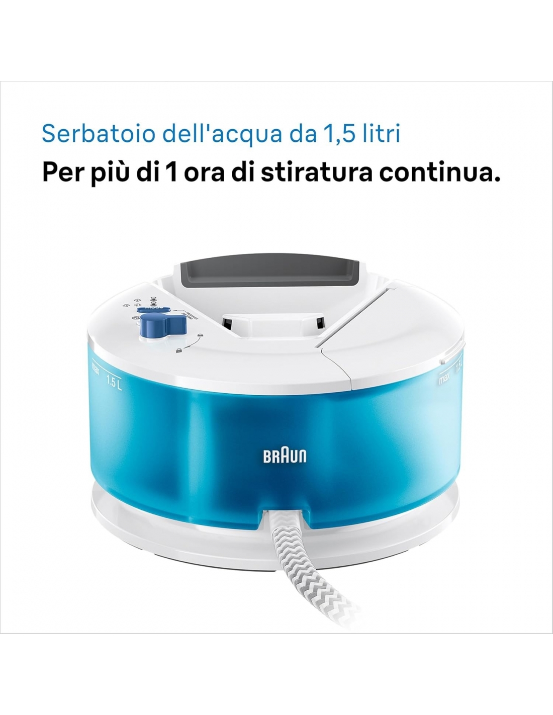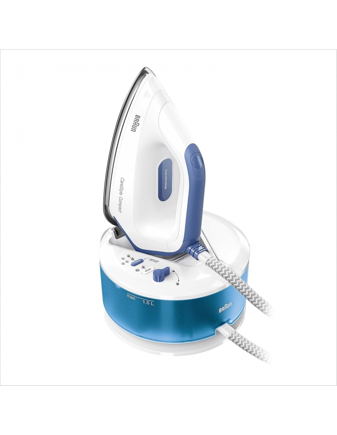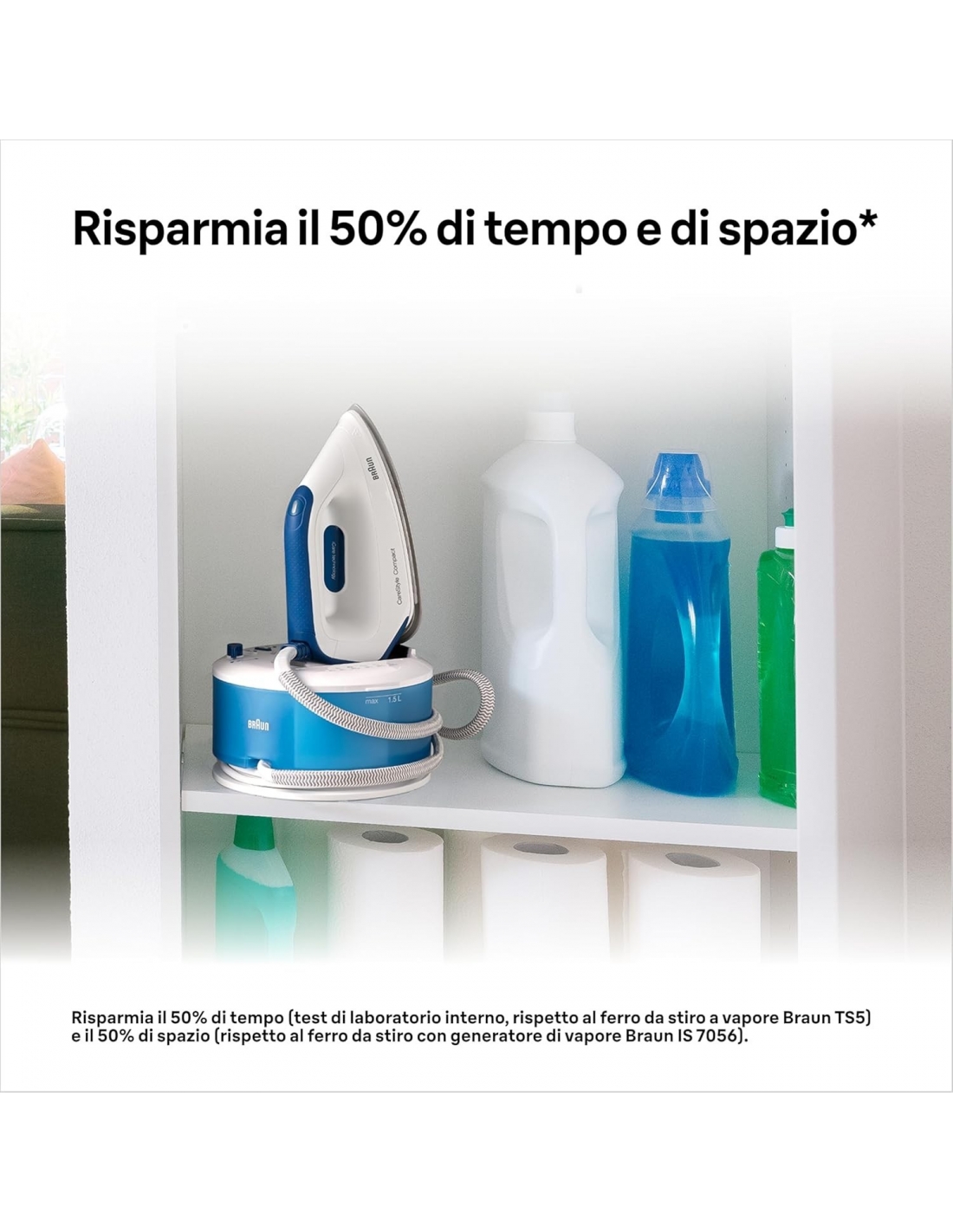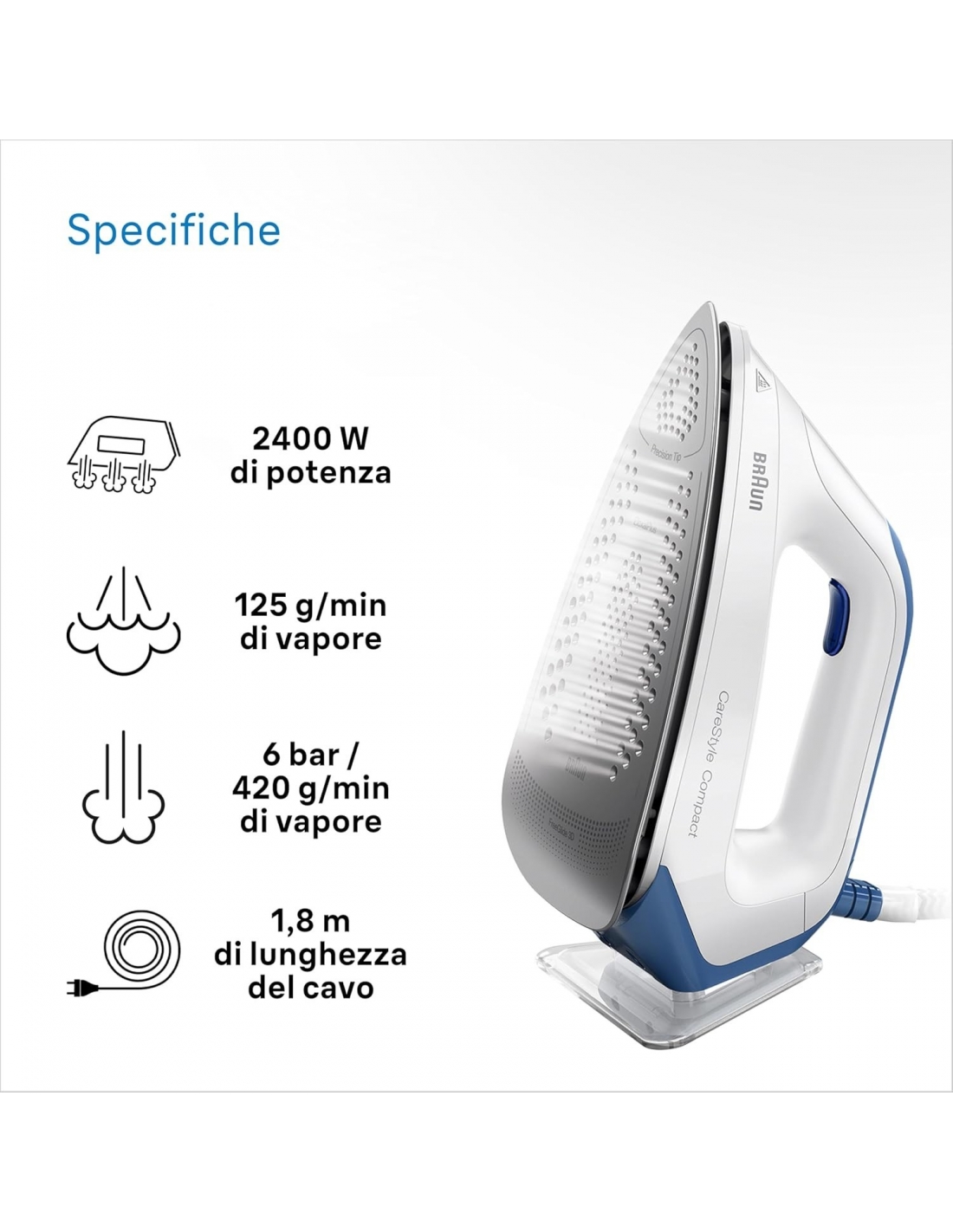 Braun CareStyle Compact IS 2143 - Ferro da stiro a vapore con piastra FreeGlide 3D, vapore verticale, 2400 Watt, pressione pompa 6 bar, colpo di vapore 400 g/min, serbatoio grande da 1,5 l, blu