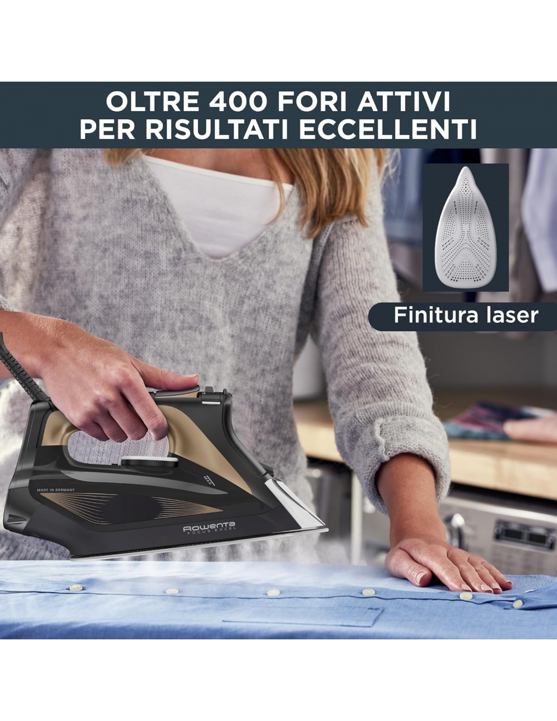 - FERRO DA STIRO: Il ferro da stiro a vapore Rowenta Focus Excel garantisce risultati di stiratura eccellenti in pochissimo tempo, grazie a 2700 W di potenza e a un getto di vapore di 180 g/minuto