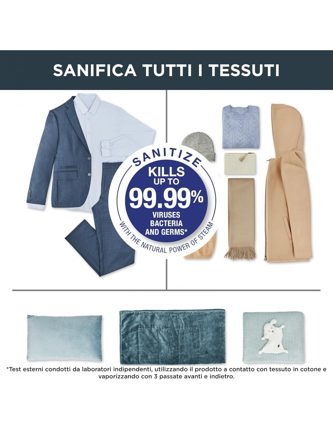 - VAPORE POTENTE: L'erogazione continua di vapore fino a 45 g/min e il potente getto di 180 g/min permettono di stirare anche le pieghe più ostinate, in particolare sui tessuti asciutti e spessi; elimina fino al 99,99% di virus, germi e batteri