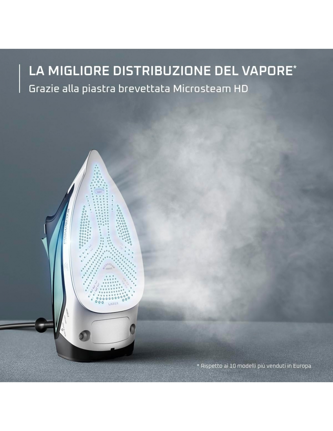 - DISTRIBUZIONE OTTIMALE DEL VAPORE: La piastra Microsteam HD offre una distribuzione ottimale del vapore per risultati di stiratura rapidi e soddisfacenti con oltre 400 fori attivi. La finitura laser della piastra garantisce resistenza ai graffi
