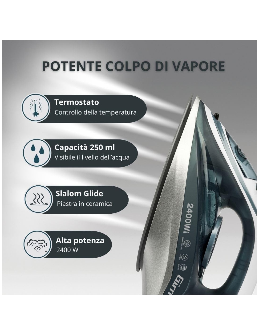 Girmi ST51 Ferro da Stiro A Vapore, Alta potenza 2400 W, Piastra in Ceramica, Impugnatura ergonomica, Capacità 250 ml, Funzione Anti-calcare, Anti-goccia, Auto-pulizia