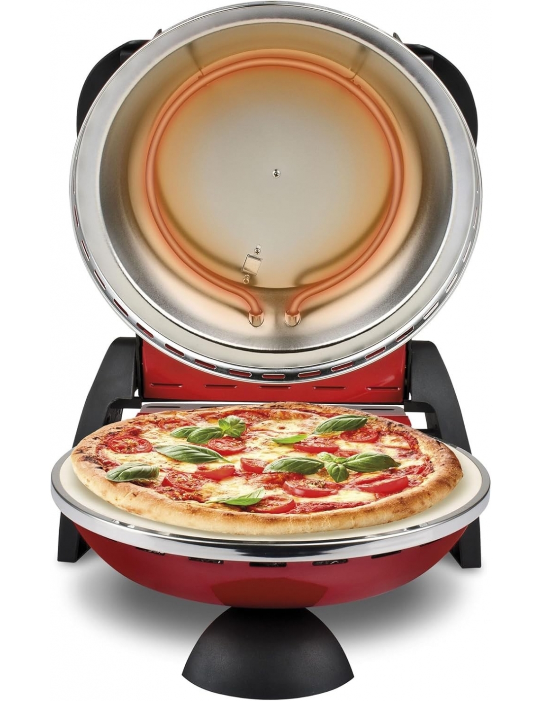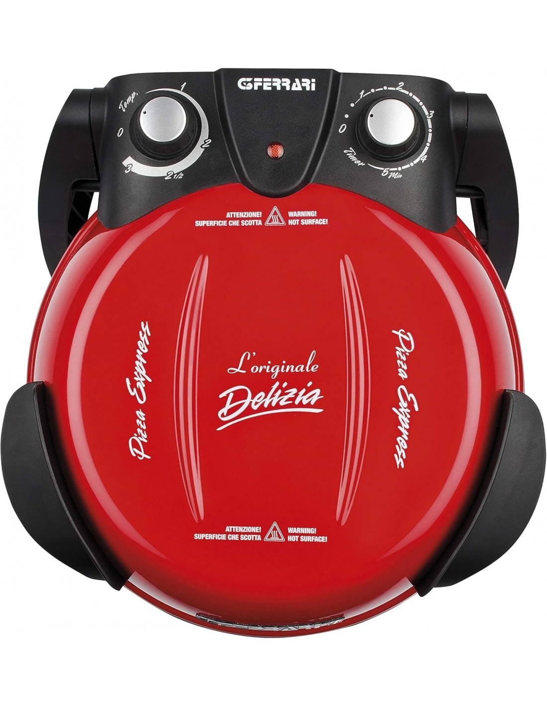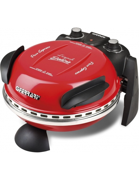 Ferrari G10006 Pizza Express Delizia, Forno Pizza, 1200 W, Termostato regolabile 400°C, Pizza fragrante in 5 minuti, Doppia resistenza riscaldante, Ricettario e Palette inclusi, Rosso