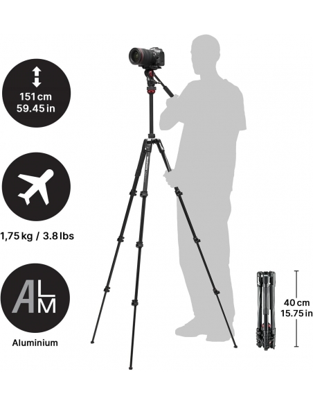 Treppiede video da viaggio Manfrotto Befree Live in alluminio con giunto sferico e chiusura a leva, stabilizzatore per video, reflex, ibrido, compatto, videocamera