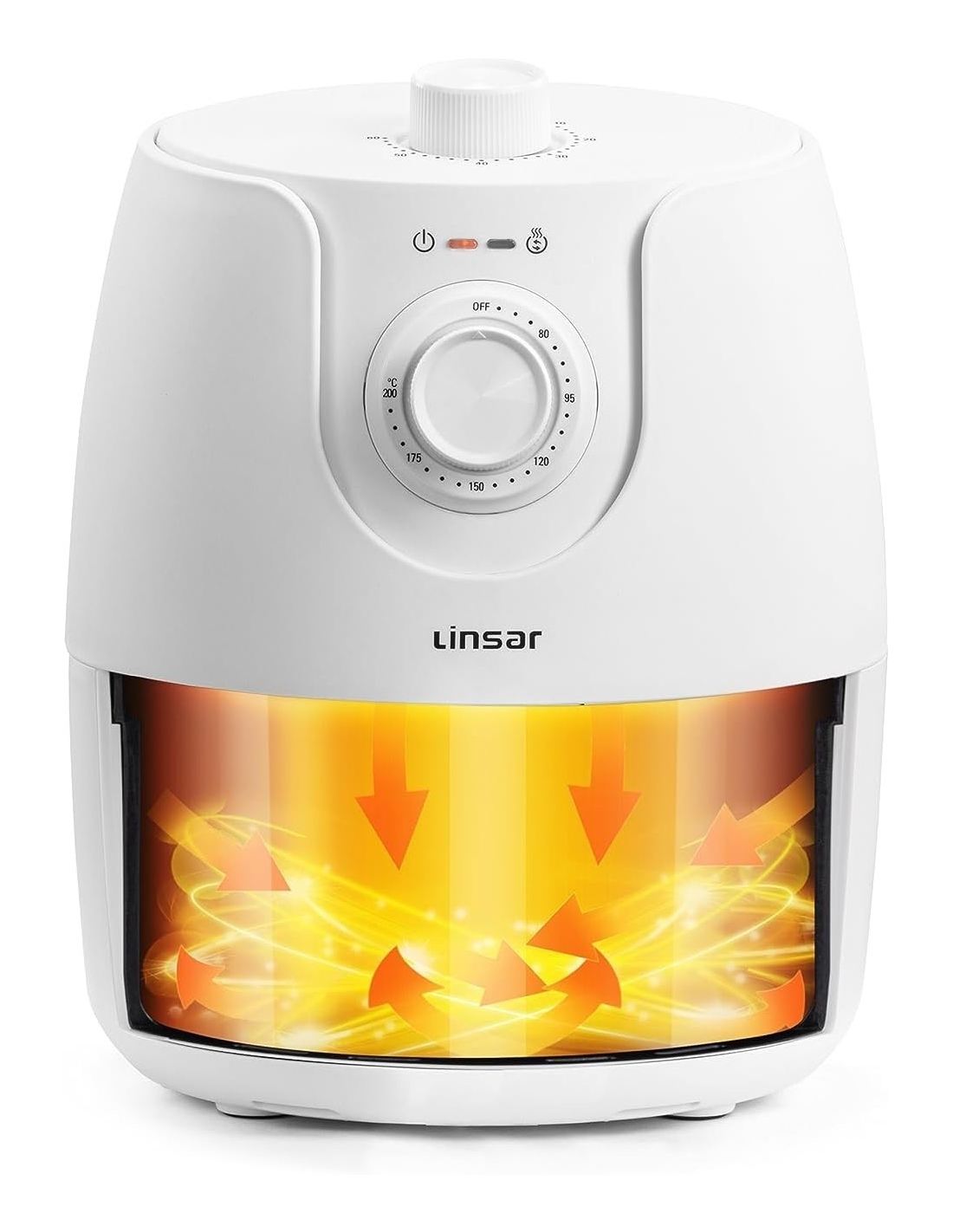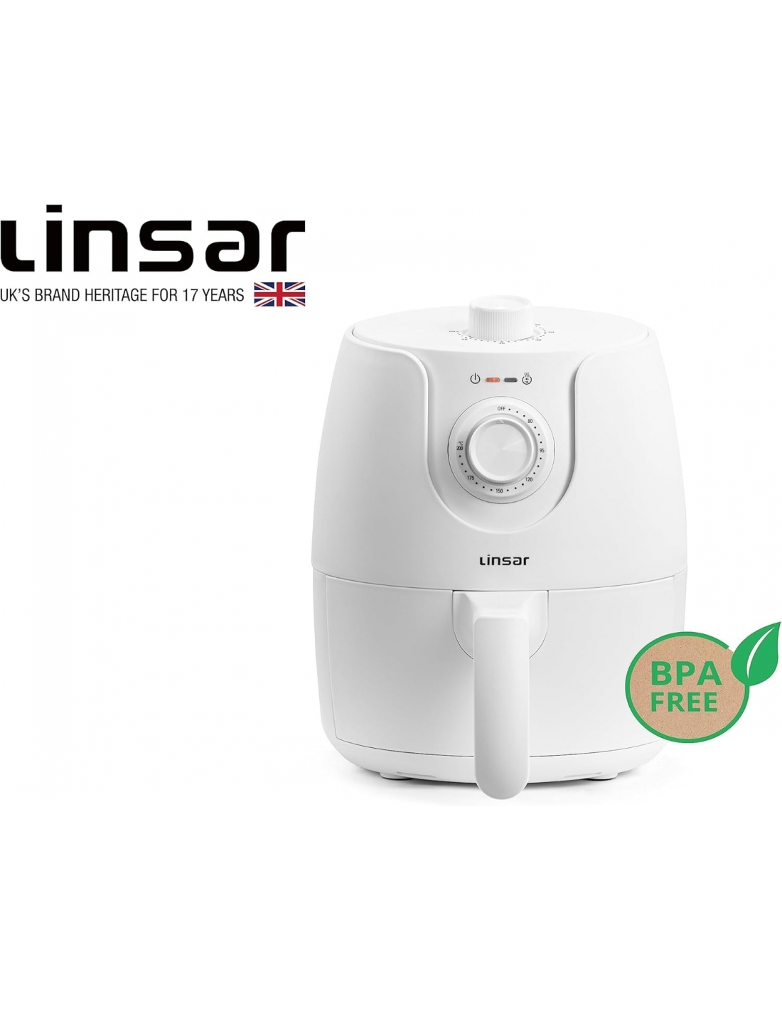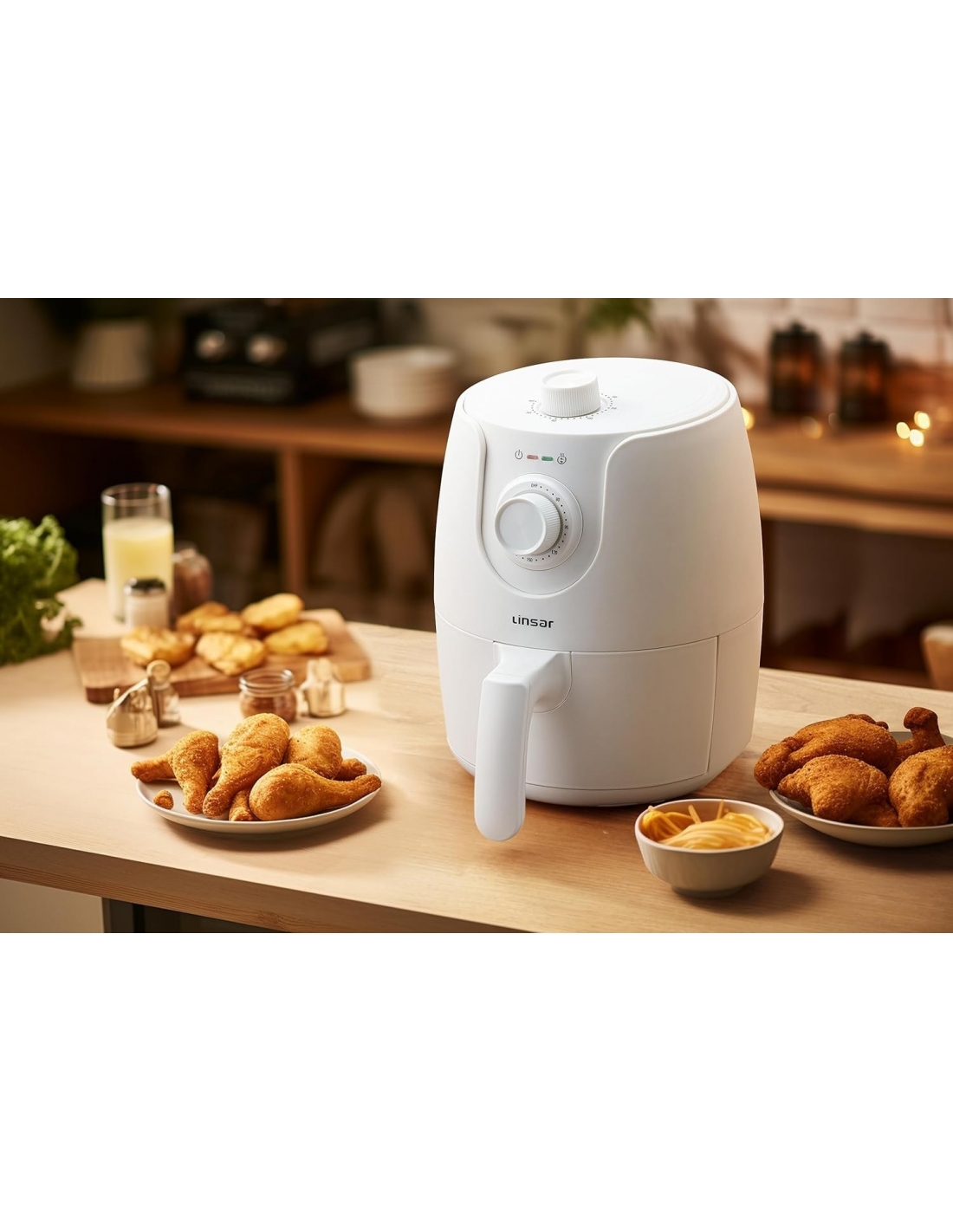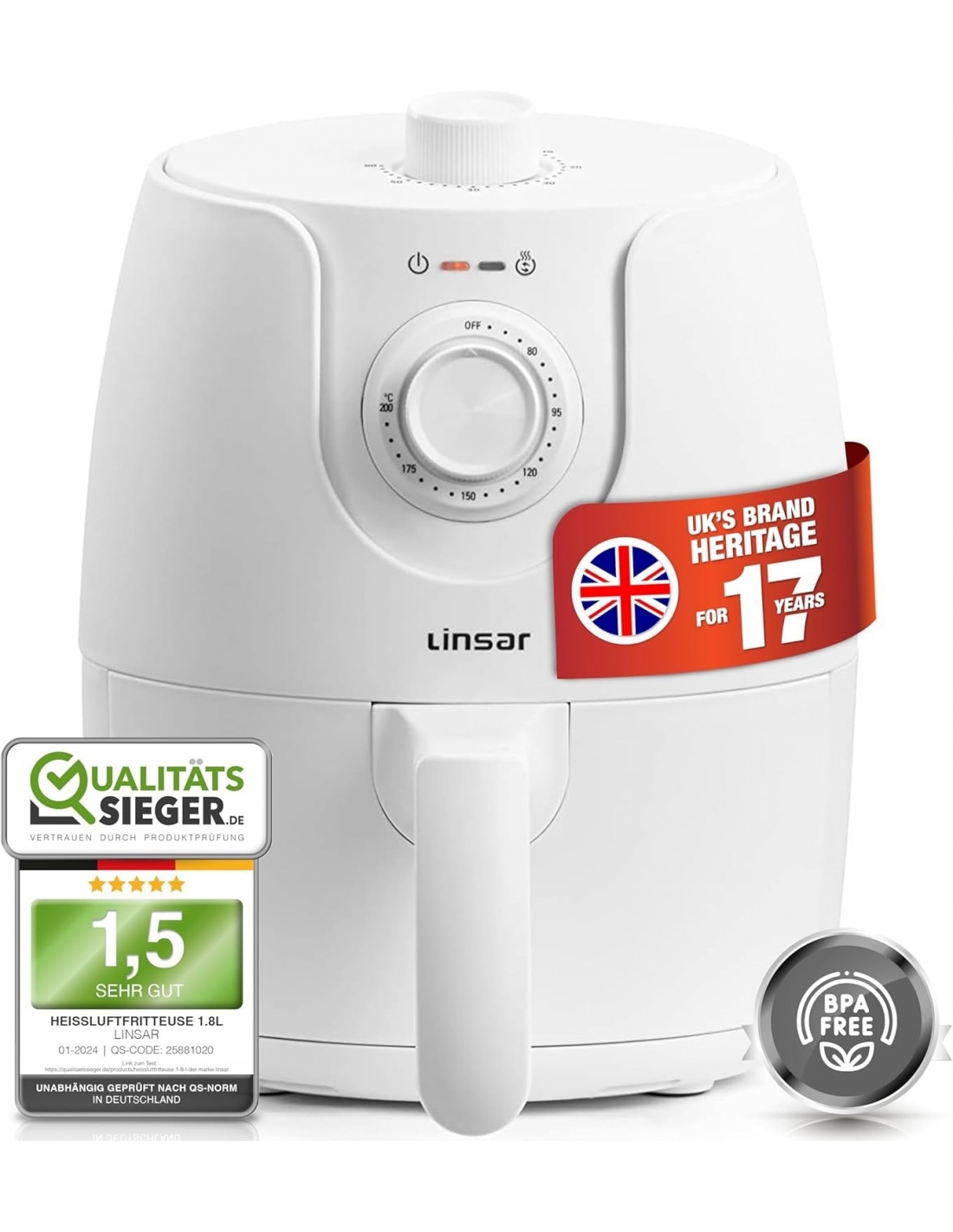 Linsar - Friggitrice ad aria calda da 1,8L con timer e funzione keep warm - Temperatura selezionabile - Risparmio energetico - 1200 Watt - Bianco