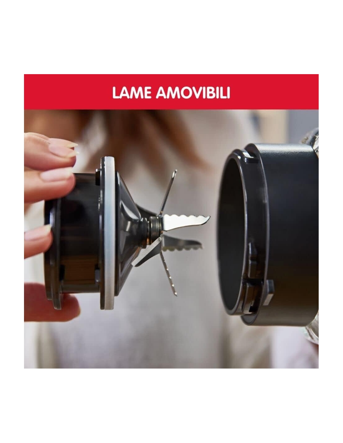 - MULTI AZIONE: Le 6 lame combinano 3 azioni complementari per ottimi risultati con ogni ingrediente: Ventola ciclonica (azione 1), Emulsione Perfetta (azione 2), Elimina tutti i pezzi (azione 3)