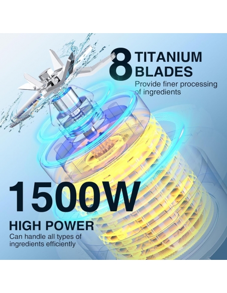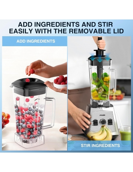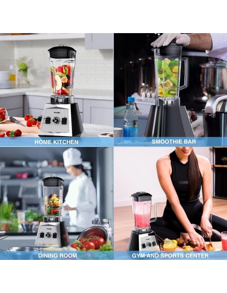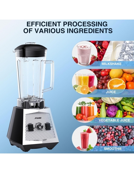 - 【Potente motore da 1500 W】 Dotato di un potente motore da 1500 W, questo frullatore accelera la preparazione degli alimenti. La sua regolazione graduale della velocità consente un controllo preciso e la funzione pulse offre un trattamento rapido e una pulizia automatica senza sforzo.