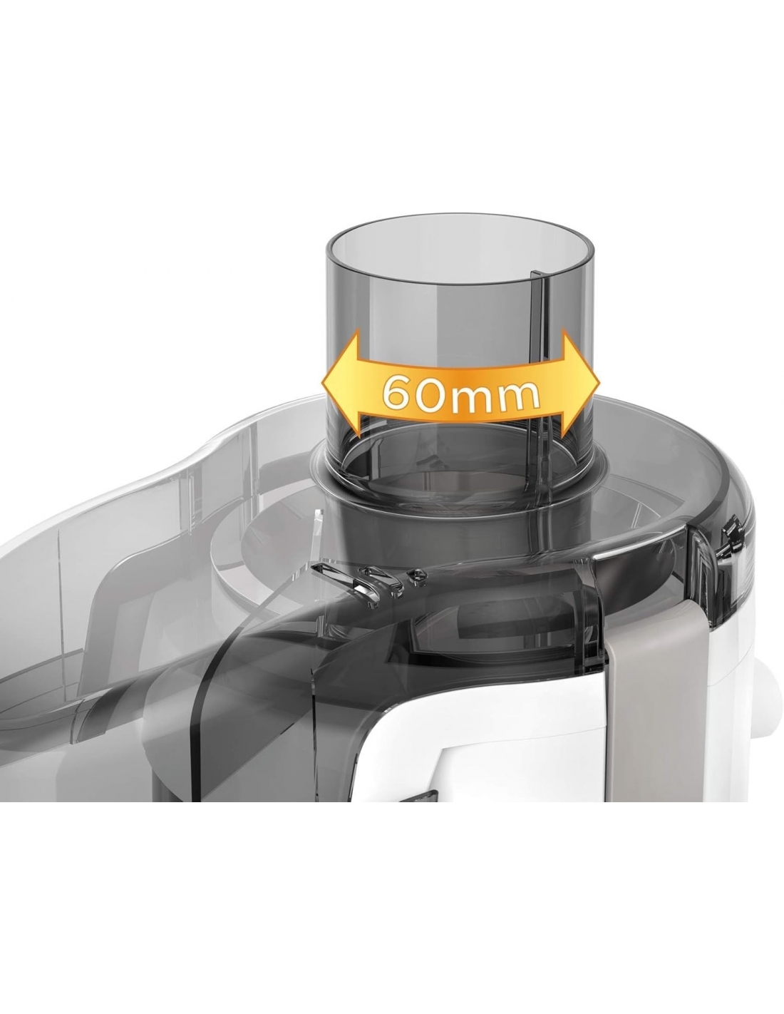 Ampia apertura per inserire pezzi di grandi dimensioni o frutti interi: 60 mm