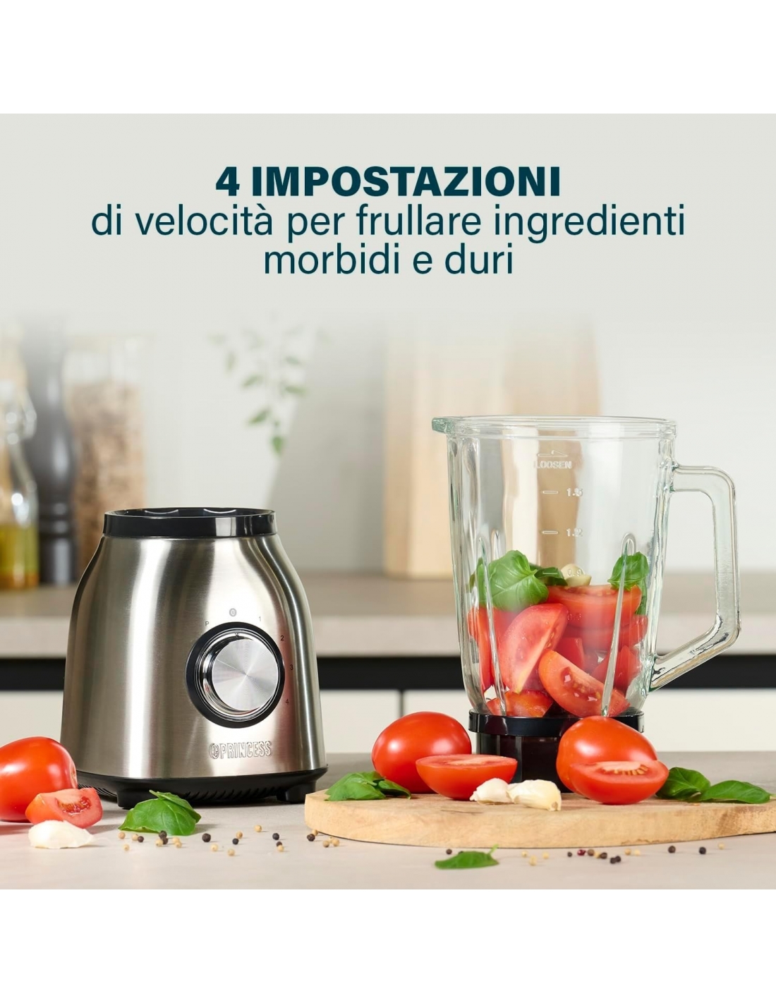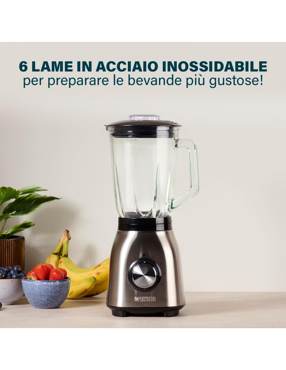 - Le sue 6 lame in acciaio inox, il suo potente motore (1000 W) e le sue 4 velocità consentono di ridurre la purea di frutta e verdura, ma anche ingredienti più duri come le noci.