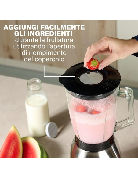 - Il coperchio è dotato di apertura di riempimento. Potete quindi aggiungere degli ingredienti durante l'uso.