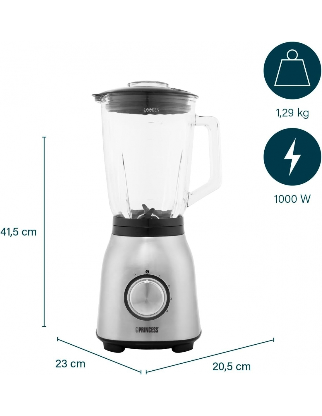 Princess 01212091 Frullatore Elettrico da Tavolo 1000 W, 1.5 Litri, Inossidabile