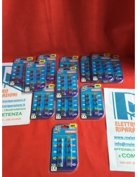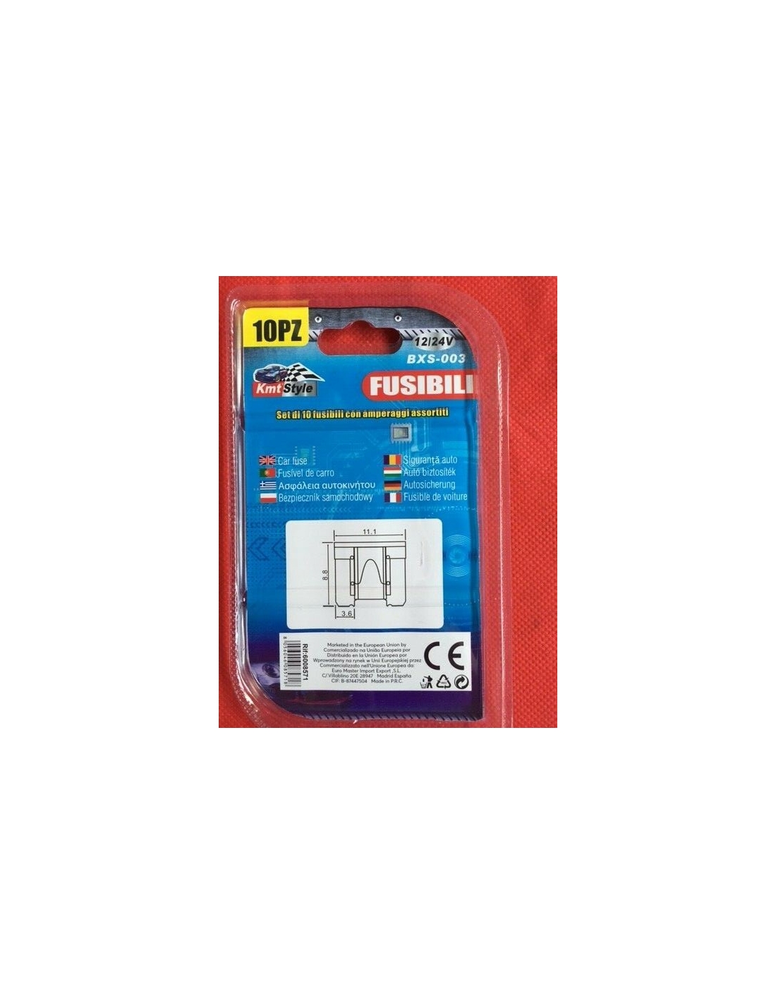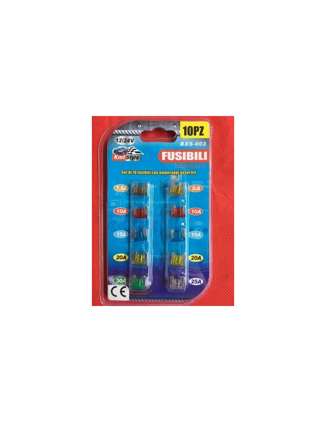 KIT 10 FUSIBILI BXS-003 12/24V ASSORTITI, LAMELLARI CORTI, moto, auto e scooter