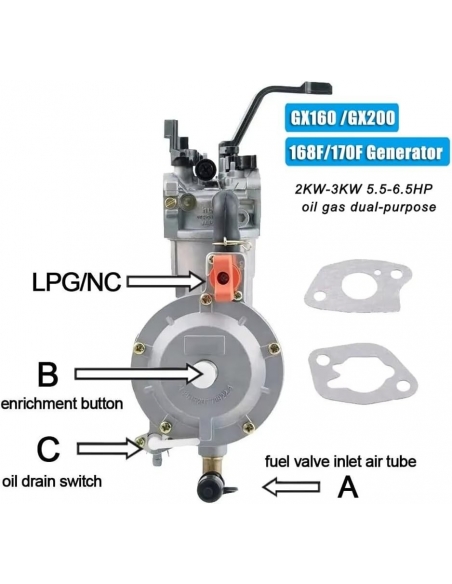 - Maggiore versatilità ed efficienza del carburante: il generatore a da 3 kW 168F 170F con kit di conversione a carburatore a doppio carburante GPL NG è una soluzione di alimentazione versatile progettata per soddisfare un'ampia gamma di applicazioni.