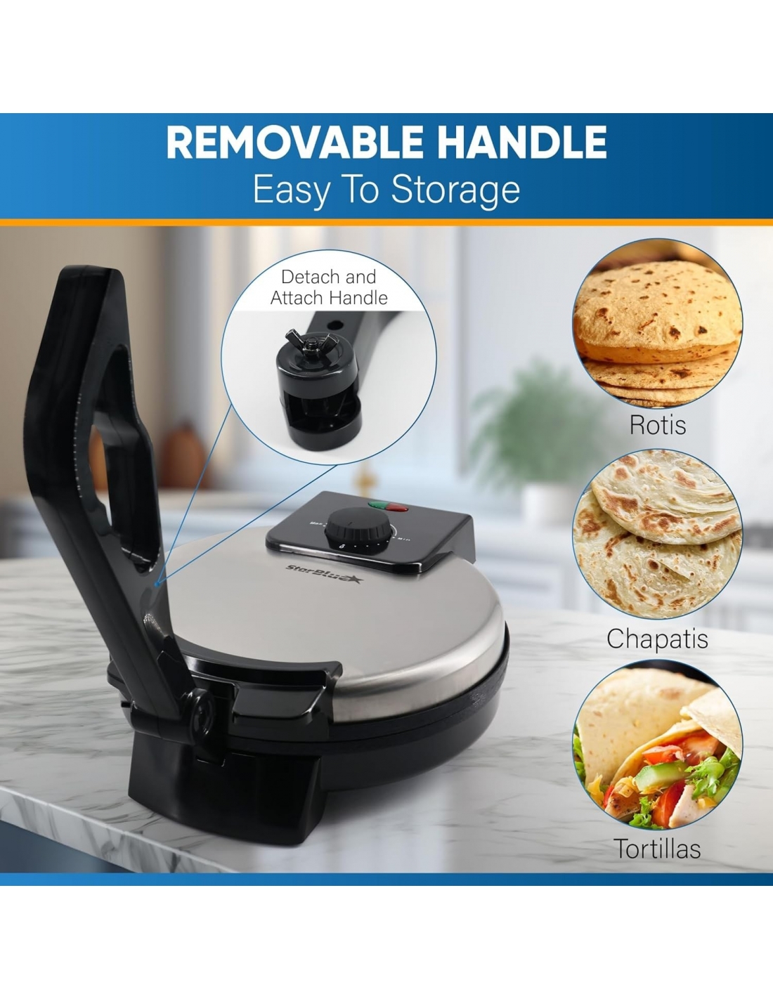 StarBlue Piastra da 10 pollici scalda a maniglia rimovibile - La macchina elettrica automatica antiaderente in acciaio inossidabile per preparare chapati, tortilla e roti in stile indiano AC 110V 50/60Hz 1200W