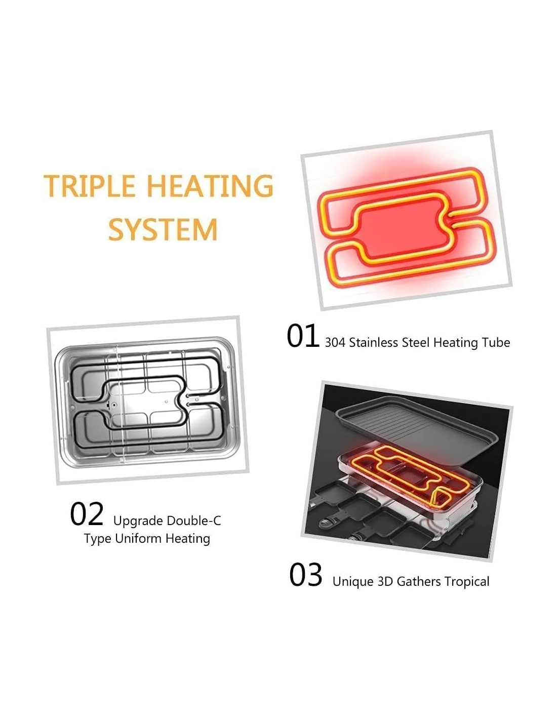 - Piastra per Piastra a Gradini - Il design a gradini del bordo può prevenire efficacemente la fuoriuscita di olio. Dopo un pasto intenso, piastre grill removibili facilitano la pulizia della vostra piastra.