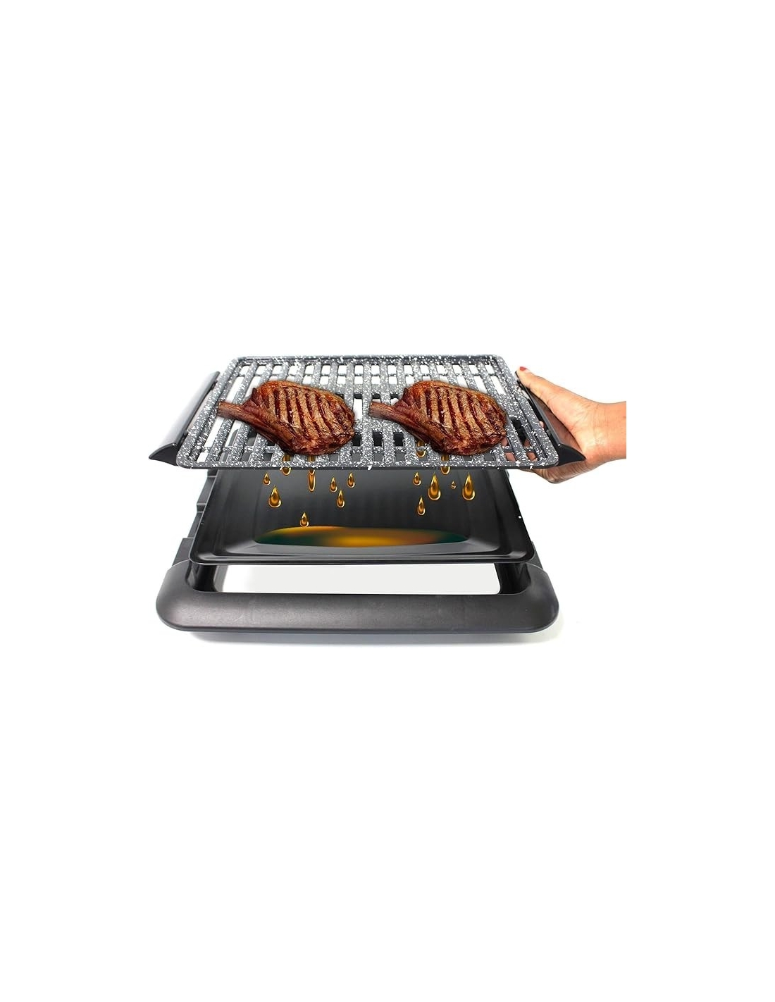 - 【 No fumo】 Potrete godere della tecnologia No Smoke per cucinare praticamente senza fumo o odori grazie alla griglia e al sistema di vassoi che raccoglie tutto il grasso che cade. È un nuovo modo ingegnoso di cucinare e grigliare in casa senza il fumo delle griglie convenzionali.
