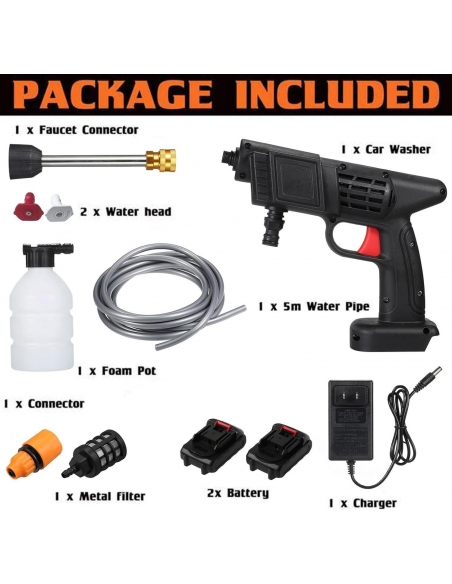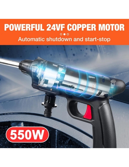 DSFEN K20134EU Idropulitrice a pressione, 50PSI portatile con batteria e caricatore 24V 1500mAh Batteria ricaricabile Lavatrice a pressione elettrica per lavare auto