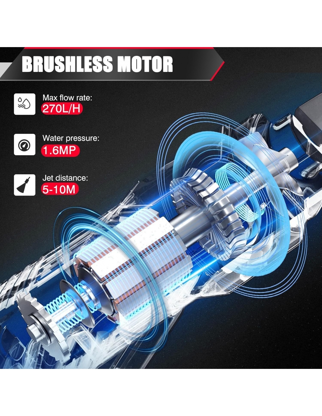 L'idropulitrice a batteria ha una pressione massima dell'acqua di 652 PSI, è leggera, senza fili e facile da montare, smontare e trasportare. È possibile utilizzare la nostra lavatrice elettrica per pulire cortili, auto, scale e sporco della piscina in pochi minuti. È uno strumento portatile perfetto per un'ampia gamma di applicazioni di pulizia.